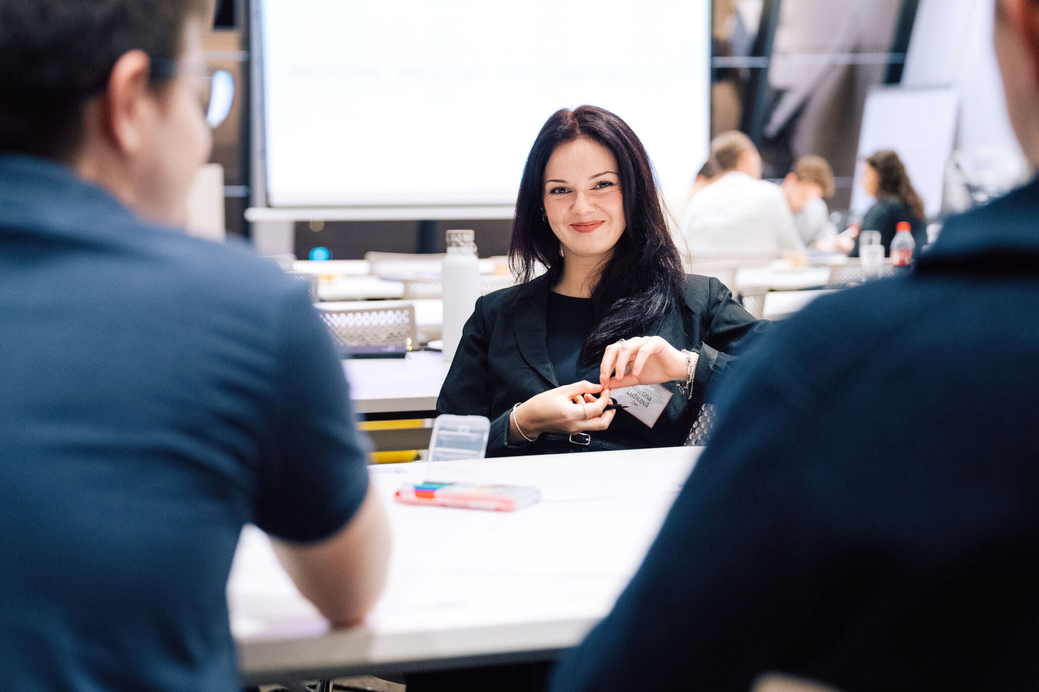 Od začátku se hodně učí, plní dílčí úkoly, konzultuje s týmem a chodí na schůzky s klienty.