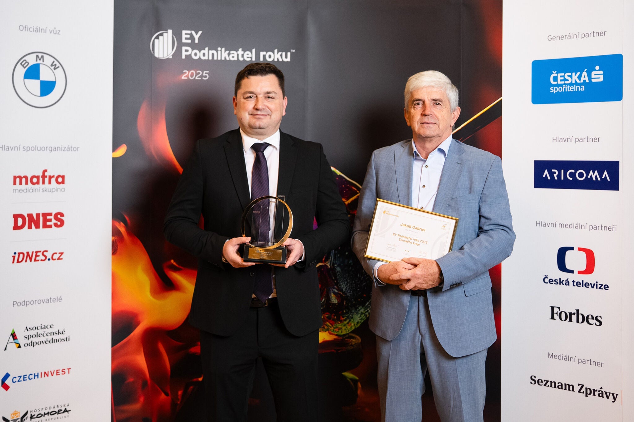 Zleva EY Podnikatel roku 2025 Zlínského kraje Jakub Gabriel, generální ředitel rodinné společnosti Ray Service, a.s.; Petr Gabriel, zakladatel společnosti a otec vítěze