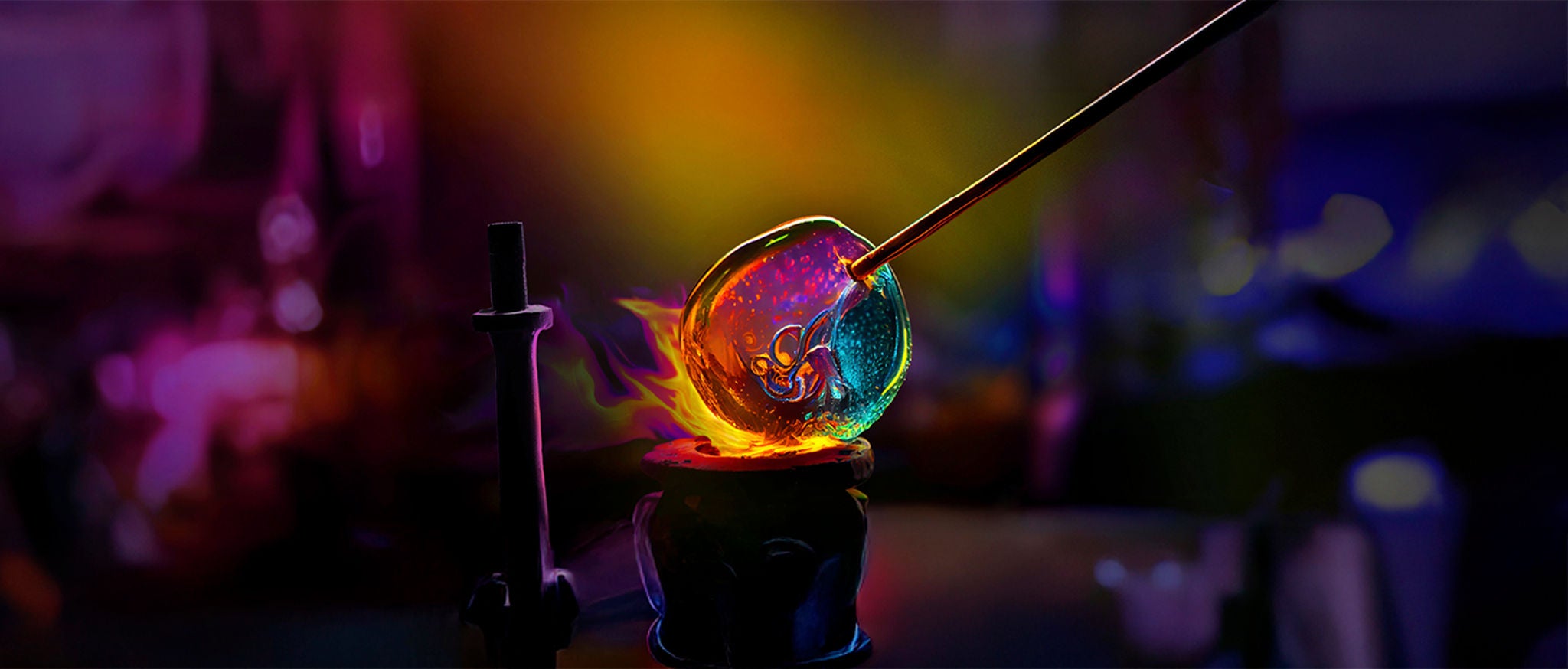 Glaspuster former smukt stykke glas i farver