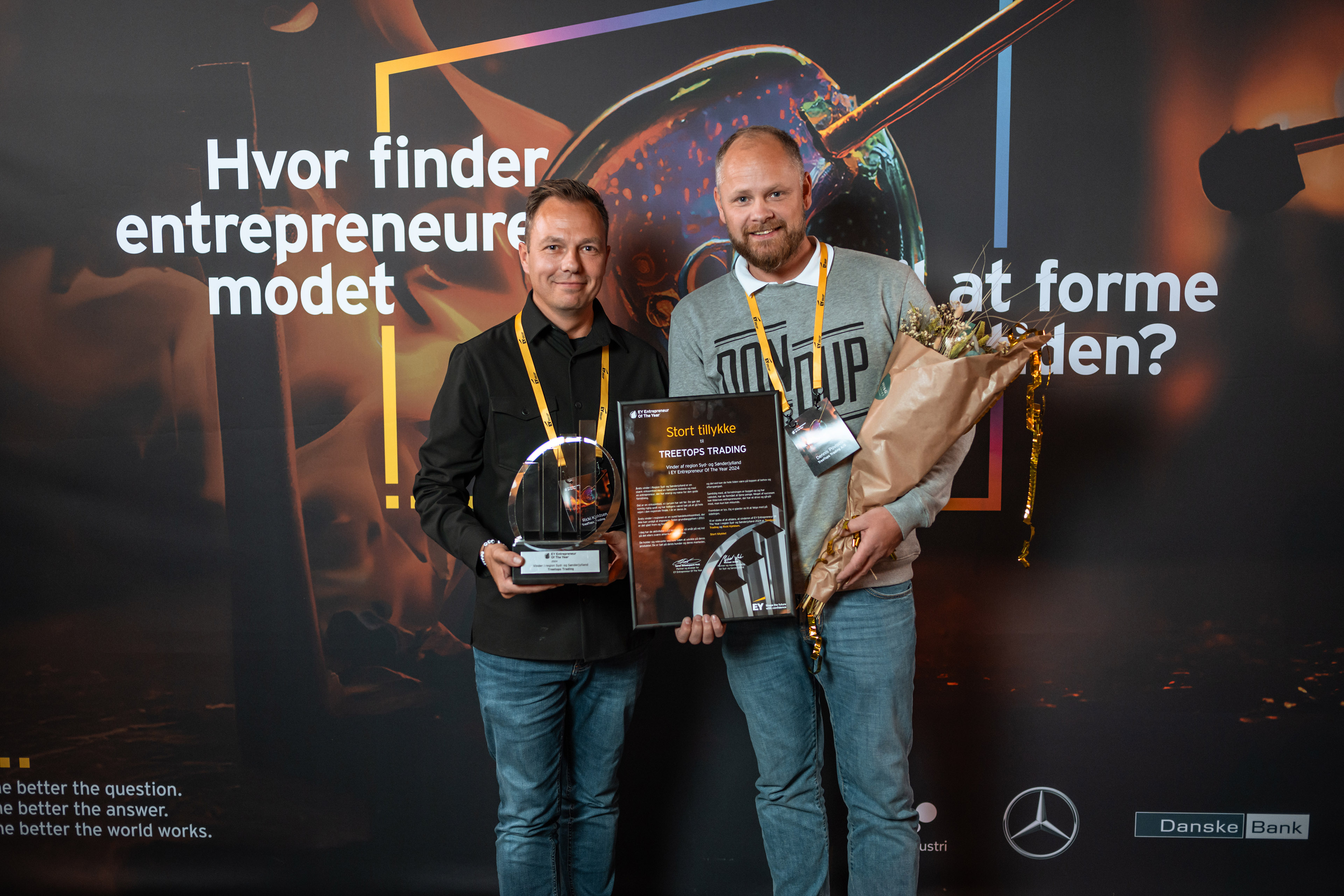 TreeTops Trading og Ricki Kjeldsen vinder EY Entrepreneur Of The Year 2024 i region Syd- og Sønderjylland.