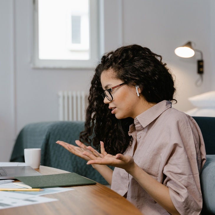 Person arbeitet am Laptop in einem stilvollen Raum.