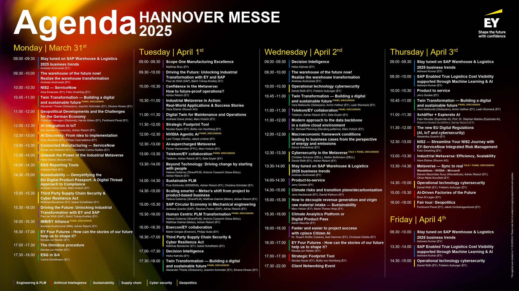 - Nachhaltigkeit und Innovationen in der Lieferkette: Austausch neuer Denkansätze zu Modellen der Kreislaufwirtschaft, KI-gestützter Logistik und zur Readiness in Bezug auf die Einhaltung regulatorischer Vorschriften