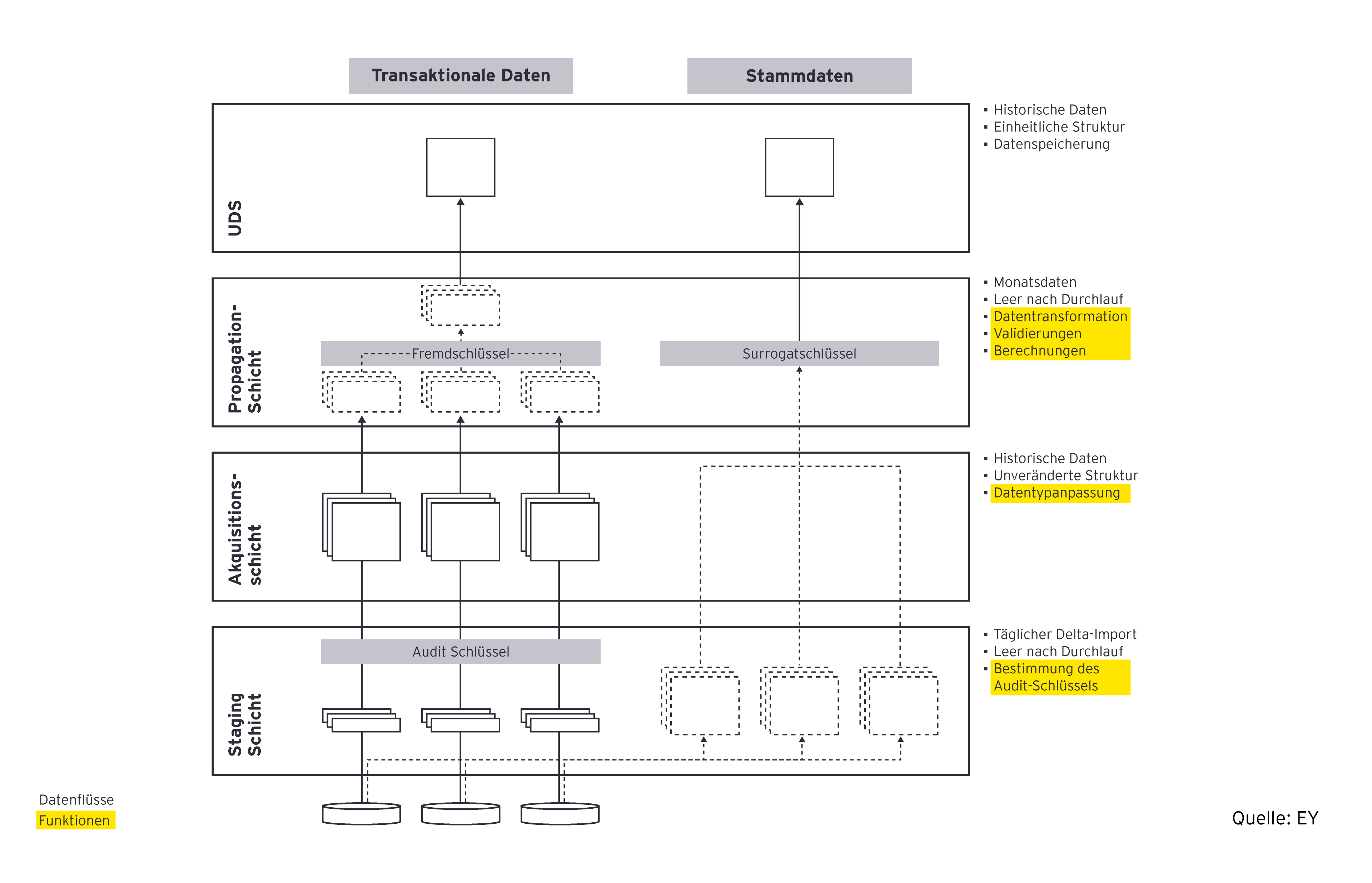Die Konzeption einer UDS ist von entscheidender Bedeutung für maximale Transparenz, einheitliche Finanzahlen und eine umfassende Datenanalyse im Konzernfinanz-Reporting. Dank einer zentralen und vereinheitlichten Datenhaltung können alle relevanten Bereiche und Anwender auf dieselben Daten zugreifen. So wird eine einheitliche Sicht auf Finanzkennzahlen sicherstellt. Insellösungen, bei denen einzelne Abteilungen jeweils auf ihre eigenen Zahlen zurückgreifen, die nicht denen des Konzerncontrollings entsprechen (Schattenbuchhaltung), können so vermieden werden.