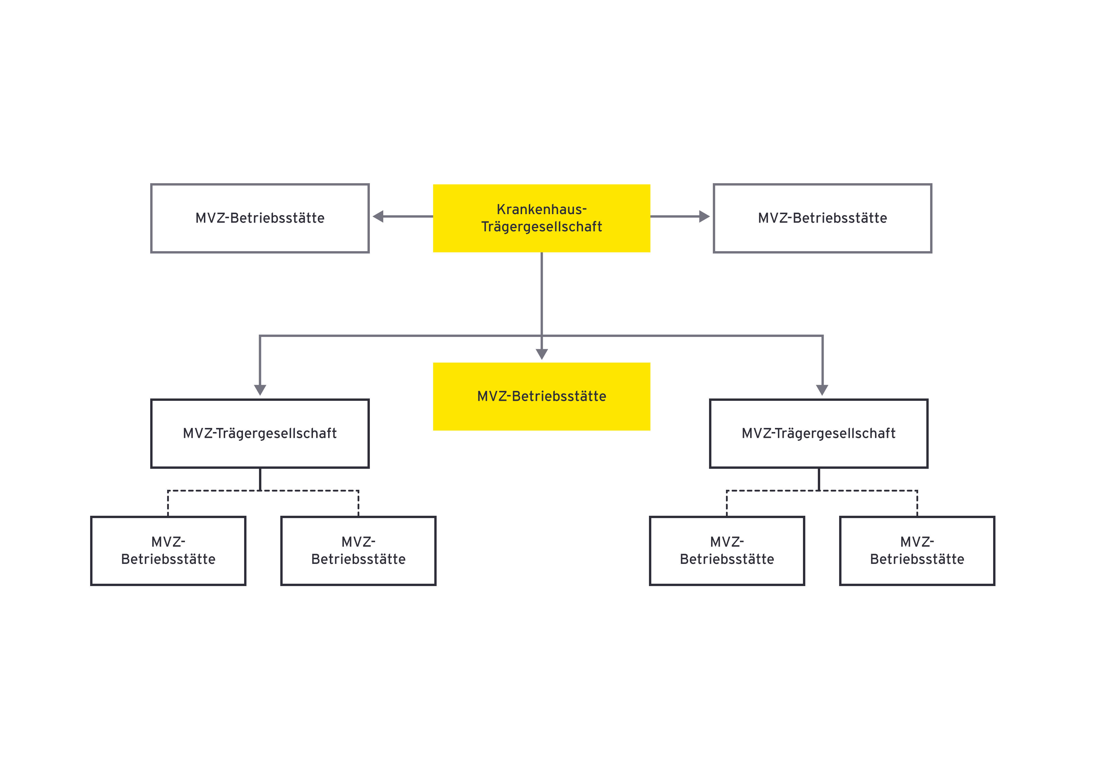 b) der Betrieb einer oder mehrerer rechtlich unselbstständiger MVZ-Betriebsstätten direkt durch einen berechtigten MVZ-Gründer (ohne Zwischenschaltung einer MVZ-Trägergesellschaft).