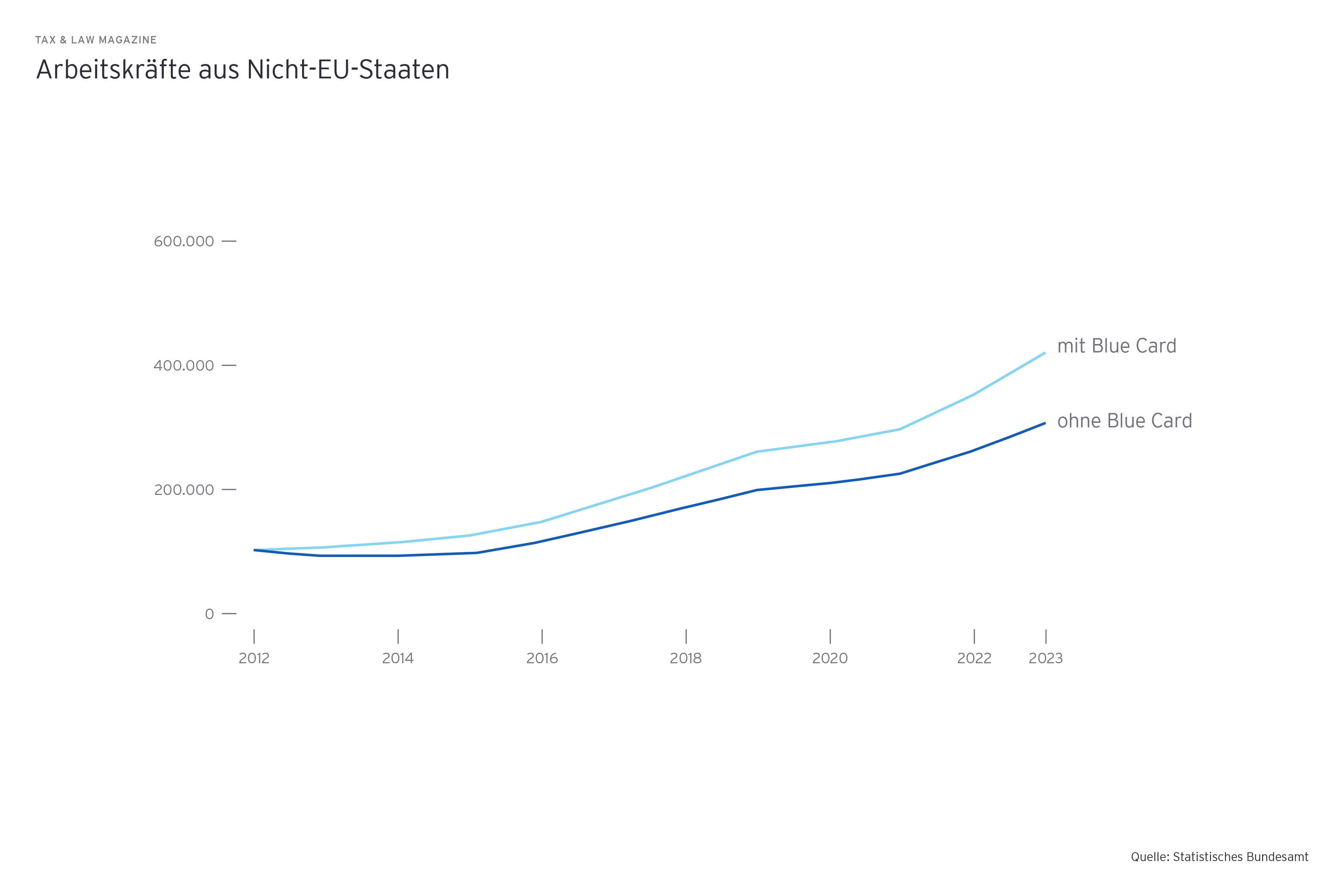 Für hoch qualifizierte Fachkräfte gibt es die Möglichkeit, die Blaue Karte EU zu beantragen. Sie ermöglicht es Akademikern, schneller einen langfristigen Aufenthalt in Deutschland genehmigt zu bekommen. Dies ist grundsätzlich immer zu empfehlen, wenn die Voraussetzungen erfüllt sind: erstens ein Hochschulabschluss, der mit einem deutschen Abschluss vergleichbar ist, und zweitens ein Arbeitsplatz in Deutschland mit einem definierten Mindestgehalt. 2024 liegt diese Gehaltsgrenze bei 45.300 Euro brutto pro Jahr, für ausgewiesene Mangelberufe wie Ingenieure, Ärzte oder IT-Spezialisten etwas niedriger (rund 41.000 Euro).