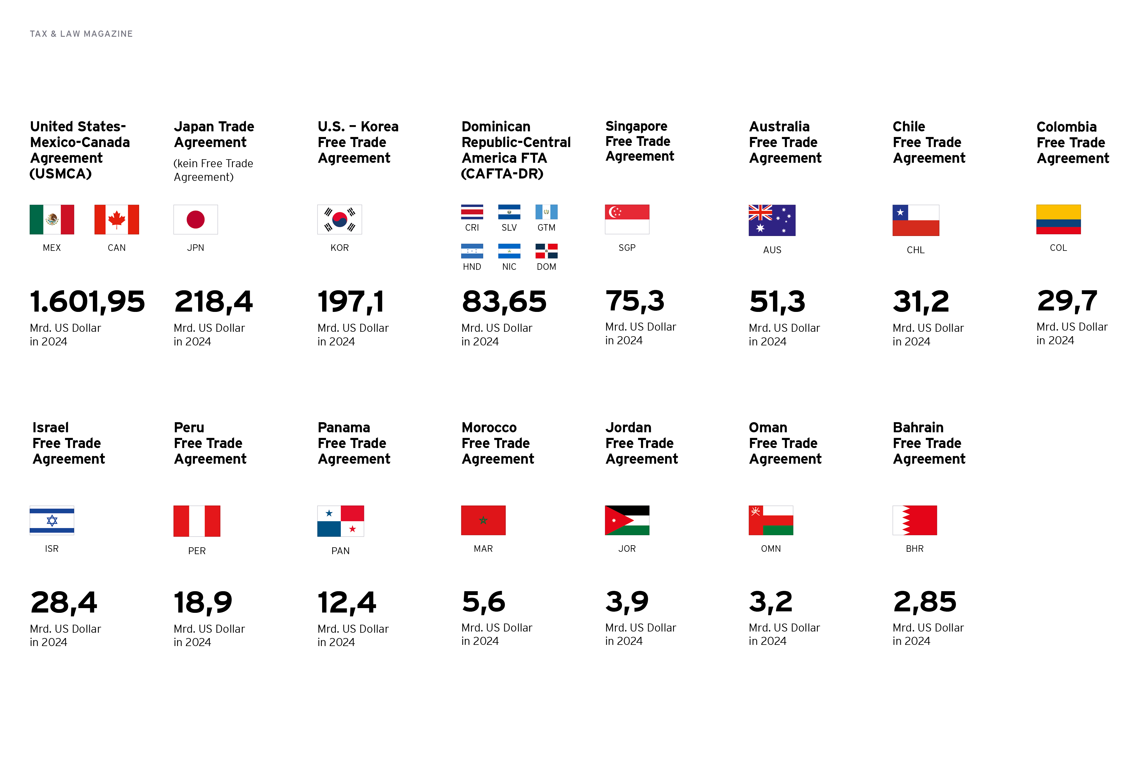 Die aktuelle US-Zollpolitik missachtet bestehende Handelsabkommen (teilweise Freihandelsabkommen). Tax & Law präsentiert eine Auswahl: