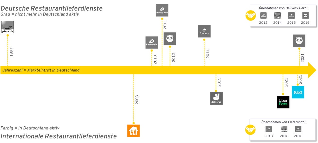 Abbildung 1 – Der deutsche Markt zu Restaurantlieferdiensten: Nach vielen Zugängen, Abgängen und Übernahmen hat sich der deutsche Markt konsolidiert und wird nunmehr von internationalen Startups dominiert.7