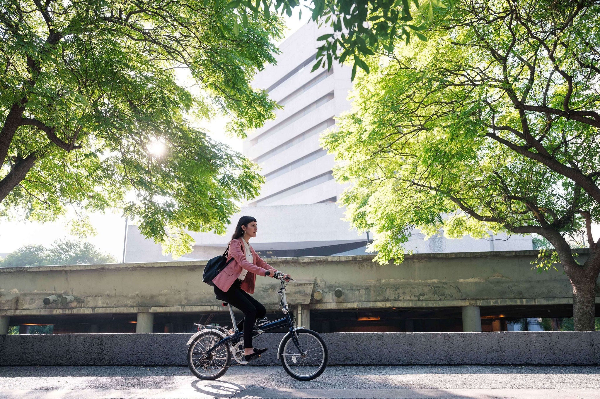 EY - Girl riding bike on path in city