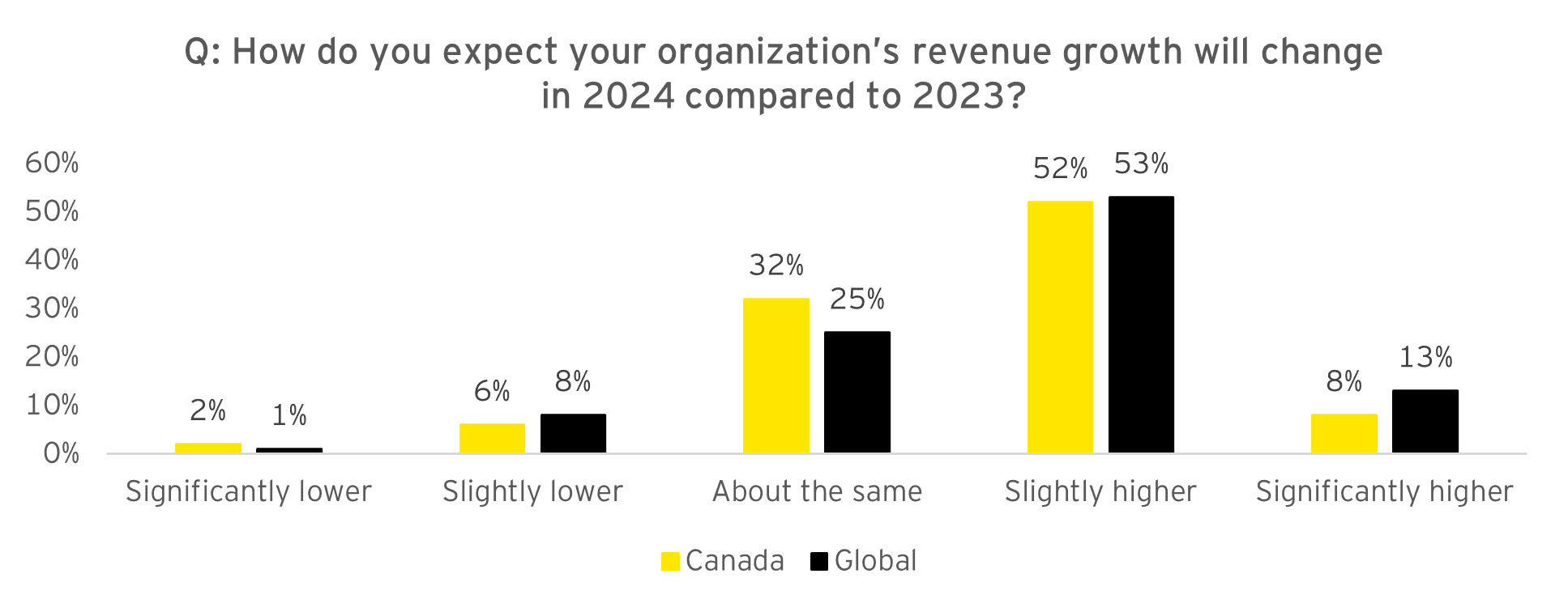 While business sentiment hints at a conservative position among Canadian leaders, their capital strategy continues to be bold for 2024. The majority of Canadian CEOs (96%) express their intention to pursue transaction initiatives in the next 12 months, surpassing their global counterparts at 89%. Of this, divestments, initial public offerings (IPOs) and joint ventures were the top choices of transaction initiatives by Canadian and global leaders.