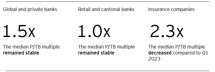 • The P/E ratio increased for retail and cantonal banks. Global and private banks as well as insurance companies experienced a decline in the P/E ratio from the previous quarter.
