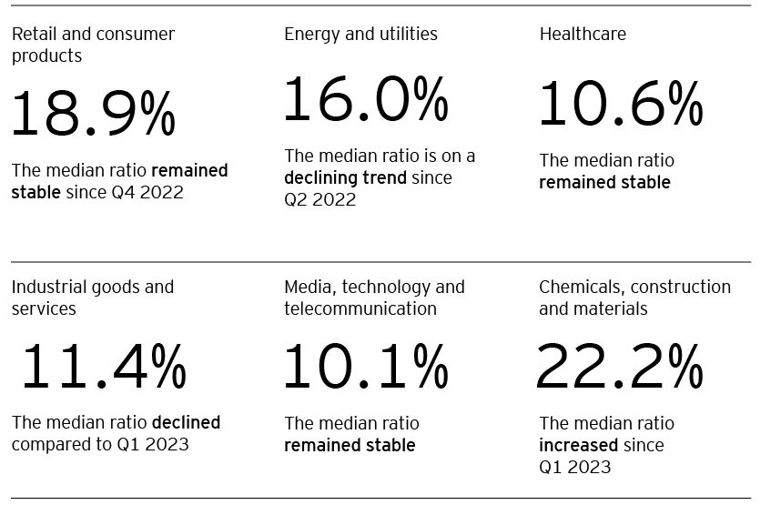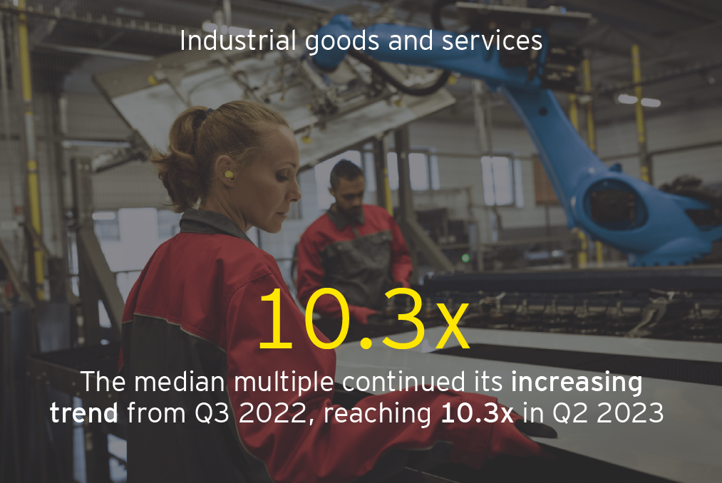 • Compared to Q1 2023, the median EBITDA trading multiples increased for E&U, IG&S and MT&T, while they decreased for the rest of the sectors.