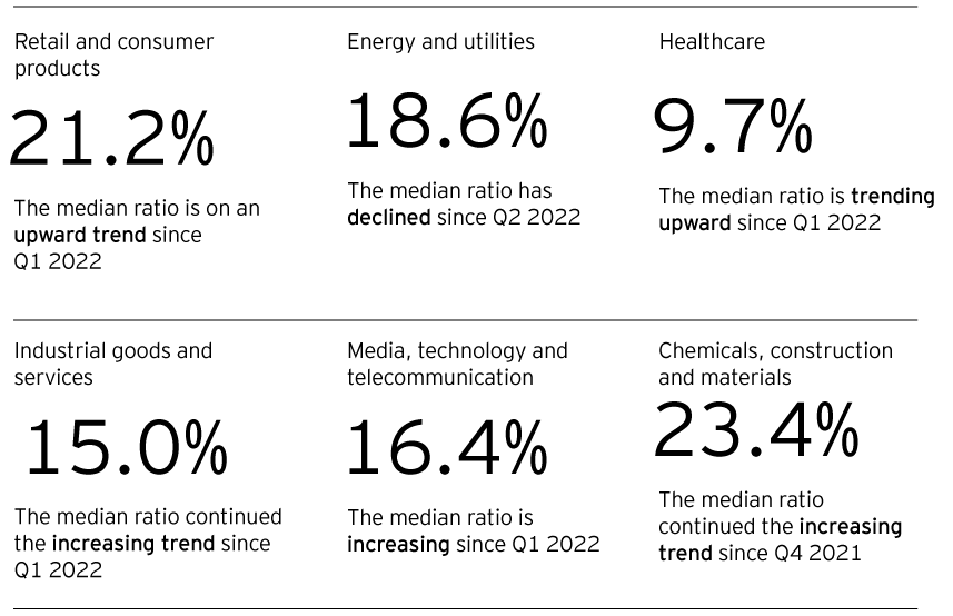 • The Debt to Capital ratio increased for all sectors as compared to Q2 2022 except for E&U.