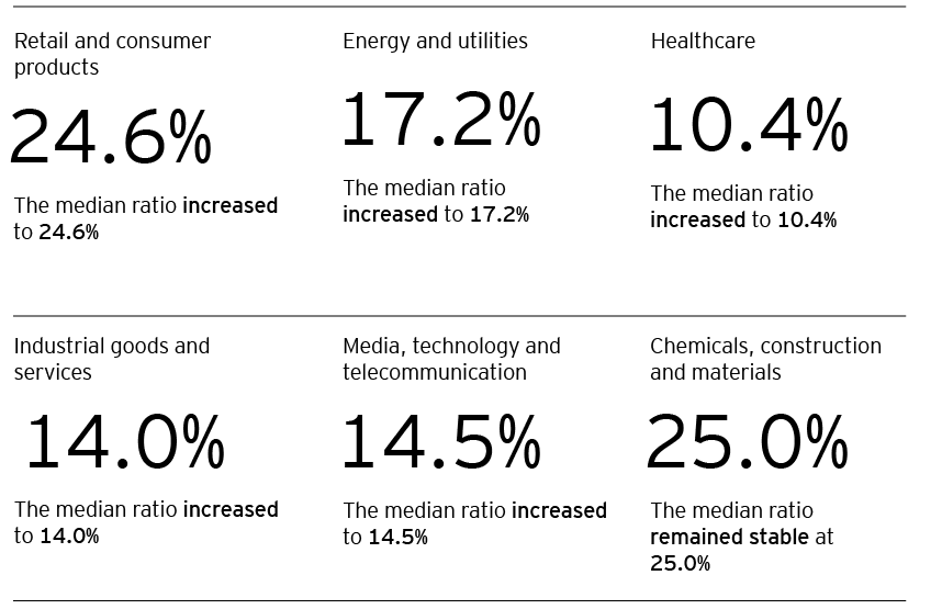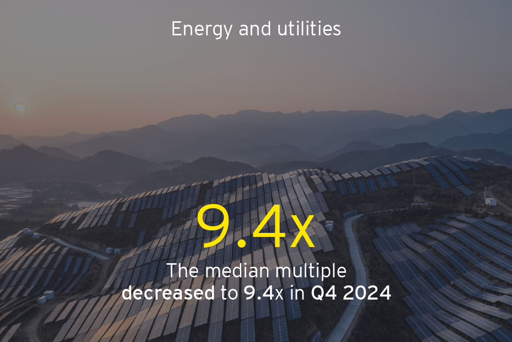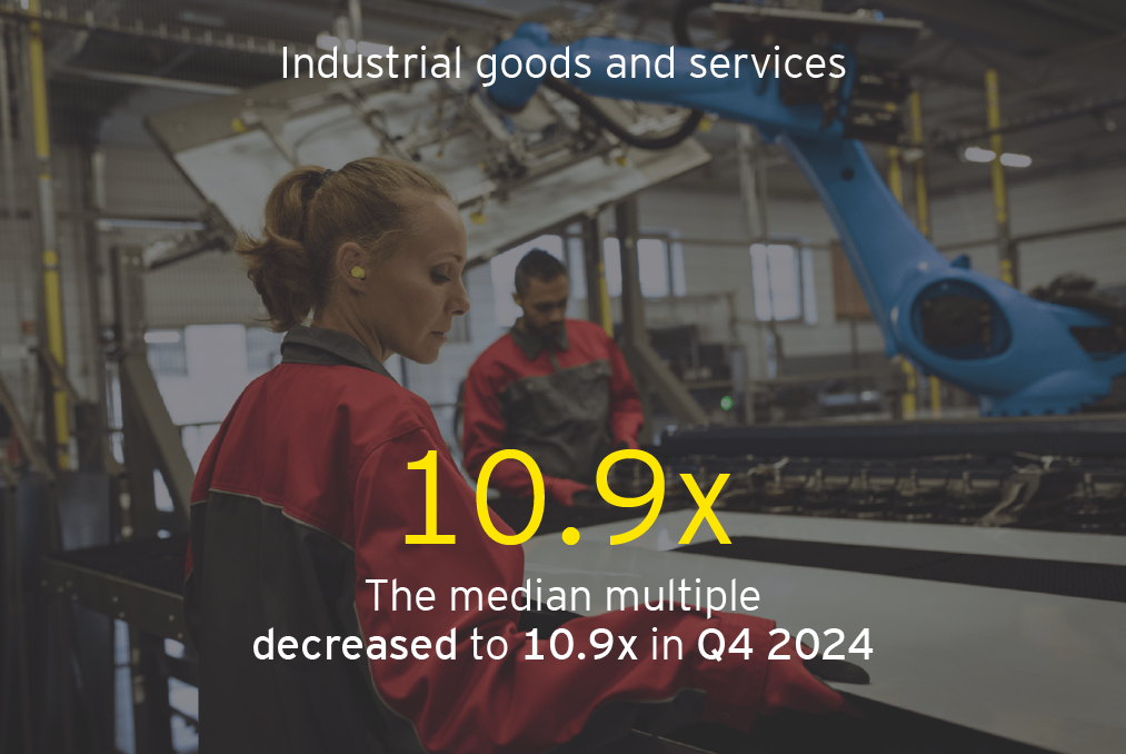 • Compared to Q3 2024, median EBITDA trading multiples declined for all the sectors.