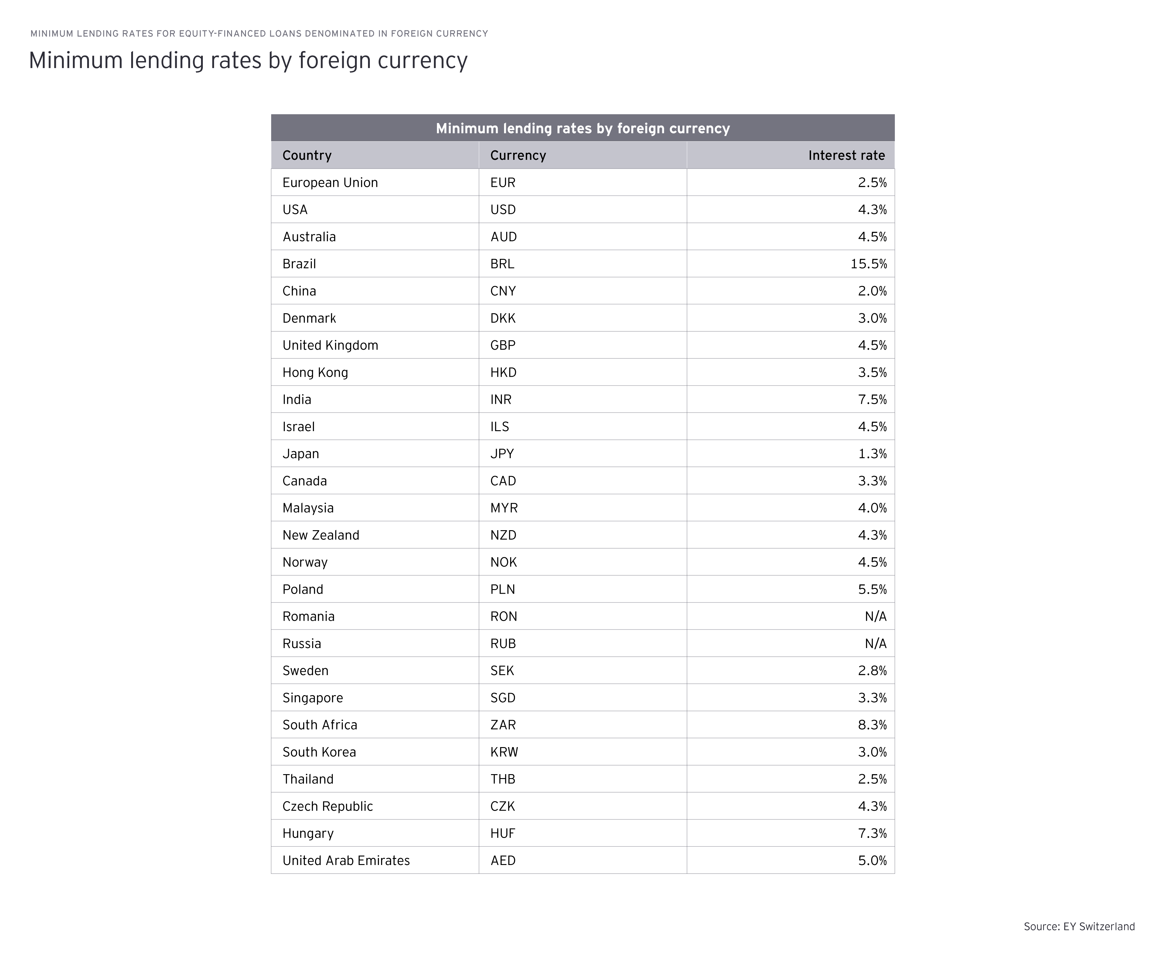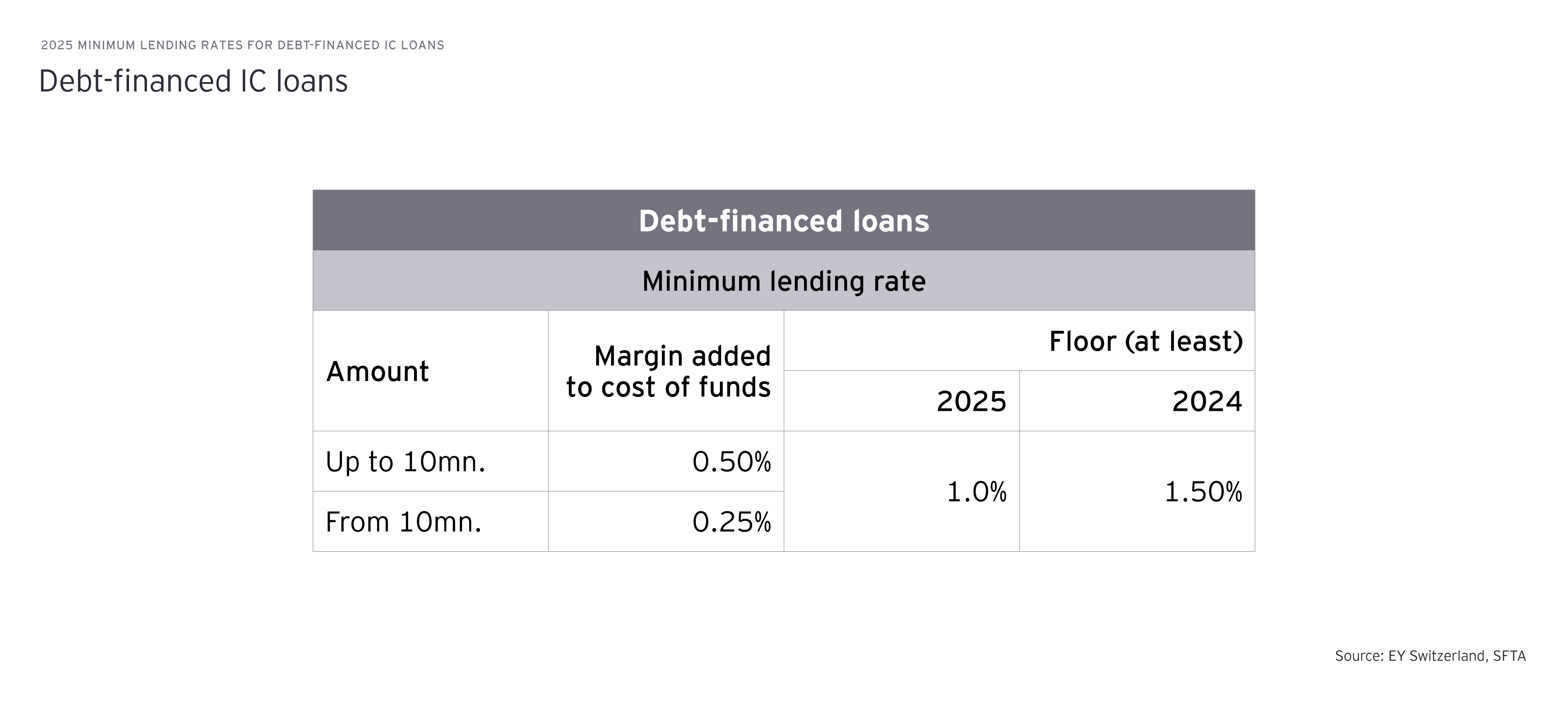 The table below sets out the minimum lending rates and maximum borrowing rates for equity-financed loans in CHF and EUR together with the rates applicable for 2024.