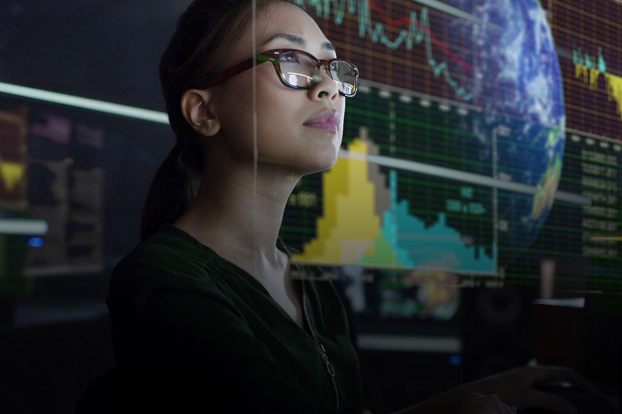 Girl looking at charts