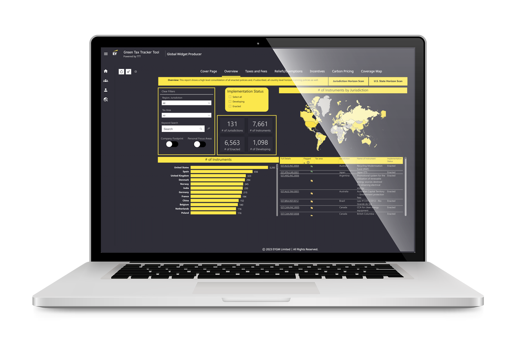 Easily identify and visualize sustainability tax measures important to you in the places important to you, worldwide.