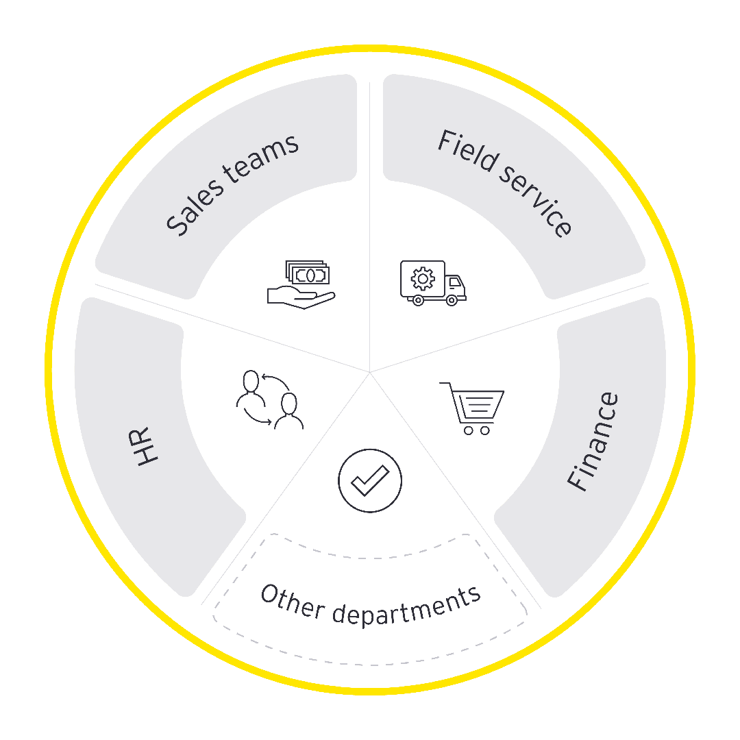 Thanks to its high flexibility, the WorkEY platform is suitable for any company, regardless of its sector. It can also help any department, and always with exactly what your colleagues need - from managing finance and accounting to organizing field workers.