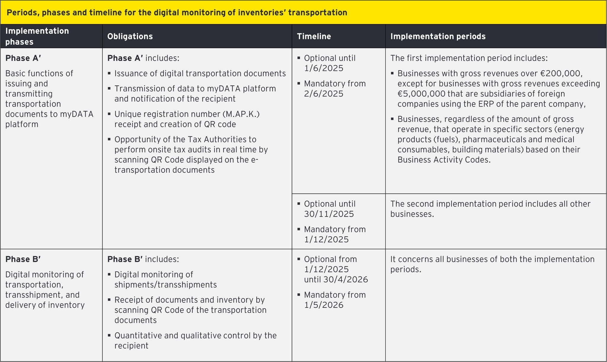 The joint Decision Α.1145/2025 (Government Gazette Β’ 5879/4-11-2025) of the Deputy Minister of Economy and Finance and the Governor of the Independent Authority for Public Revenue (IAPR) amended the Decision A.1122/2024 for the scope, the timeline of transmission, as well as the implementation of the digital issuance of e-transportation documents.