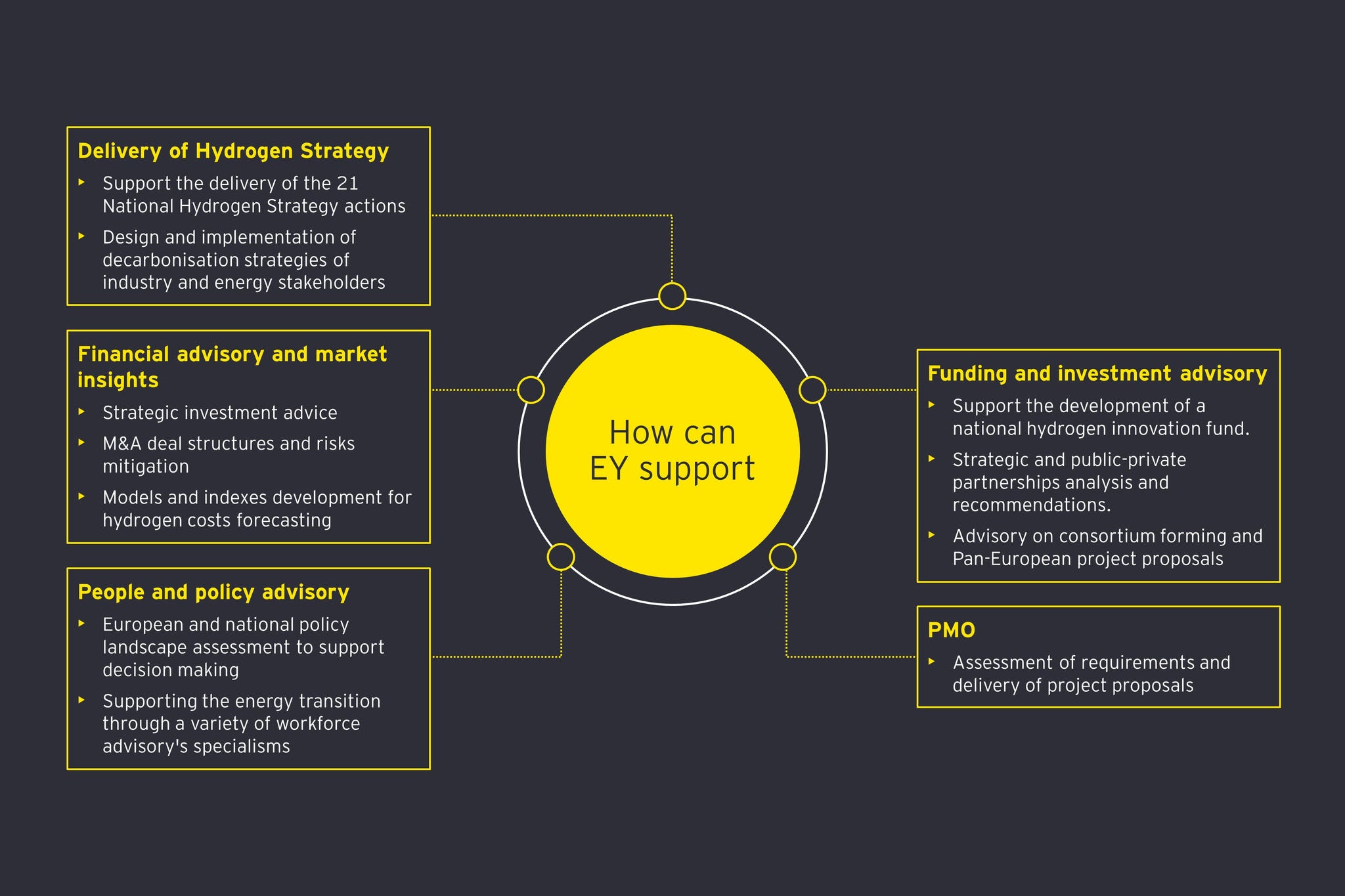 Five steps on how EY can help your business deliver a hydrogen strategy.