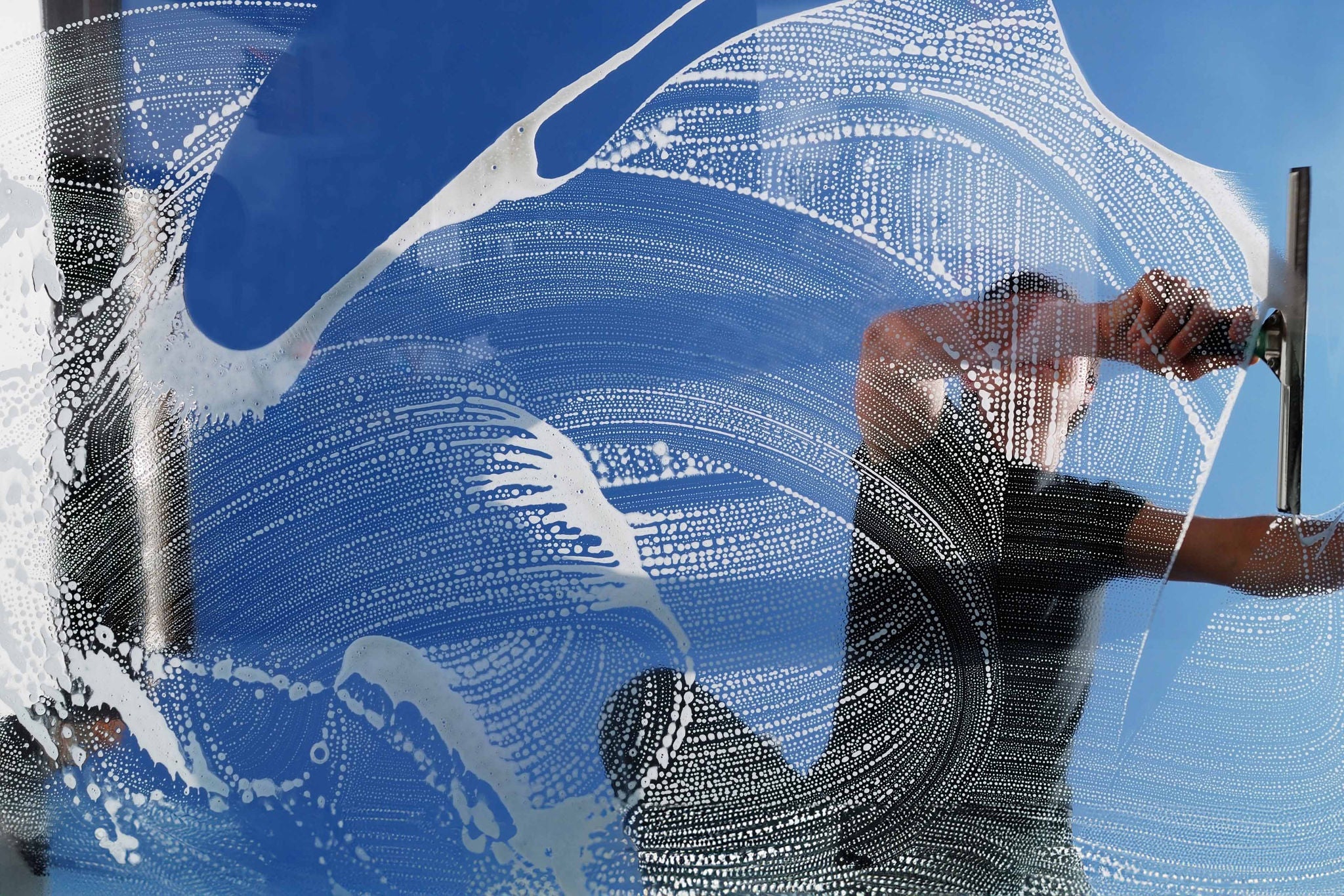 An efficient domestic window cleaner is working on a customers conservatory roof.