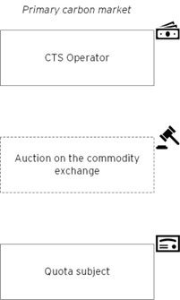 The carbon quota units are allocated among the quota subjects on the terms of their free distribution and sale by auction within the limits of the volumes determined by the National Carbon Quota Plan.