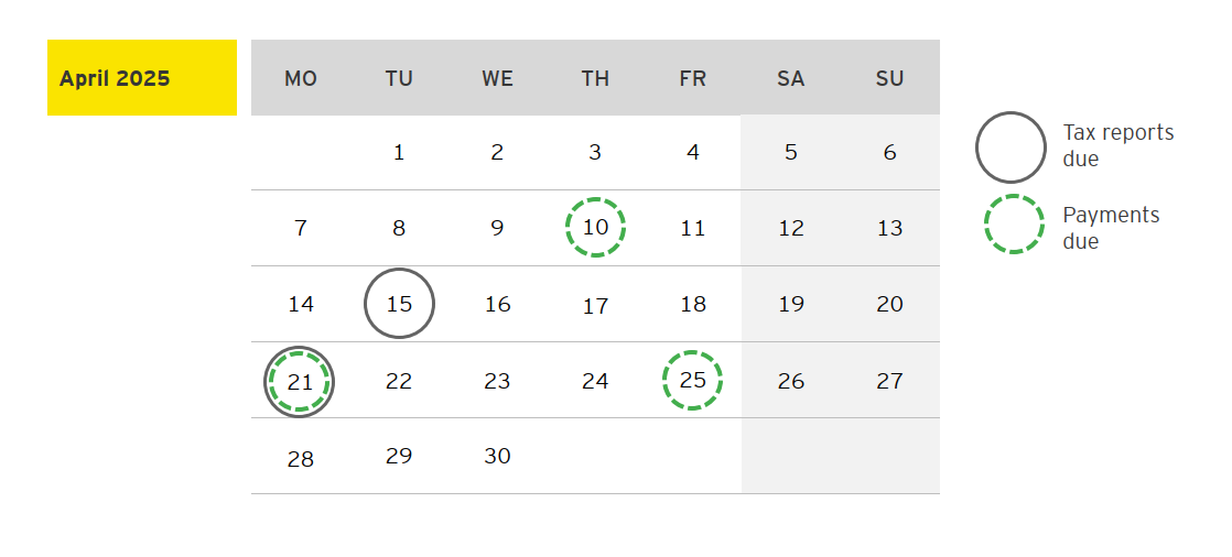 We bring to your attention a summary of the monthly compliance obligations for companies doing business in Kazakhstan - "Taxpayer Calendar", April 2025.