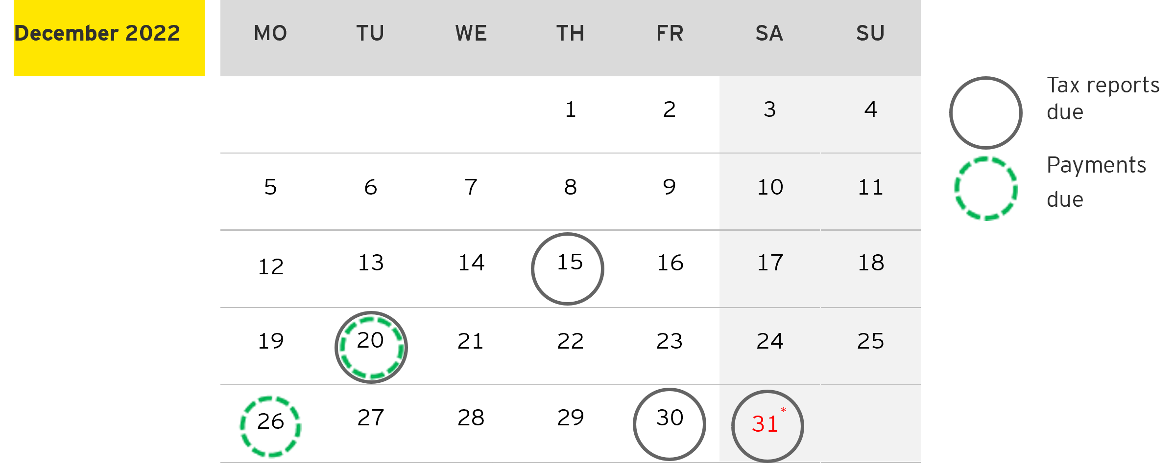 ¹ Not later than December 31 of the reporting tax period (in accordance with the Art. 38 of the Tax Code, the due date for submission is January 4, 2023).