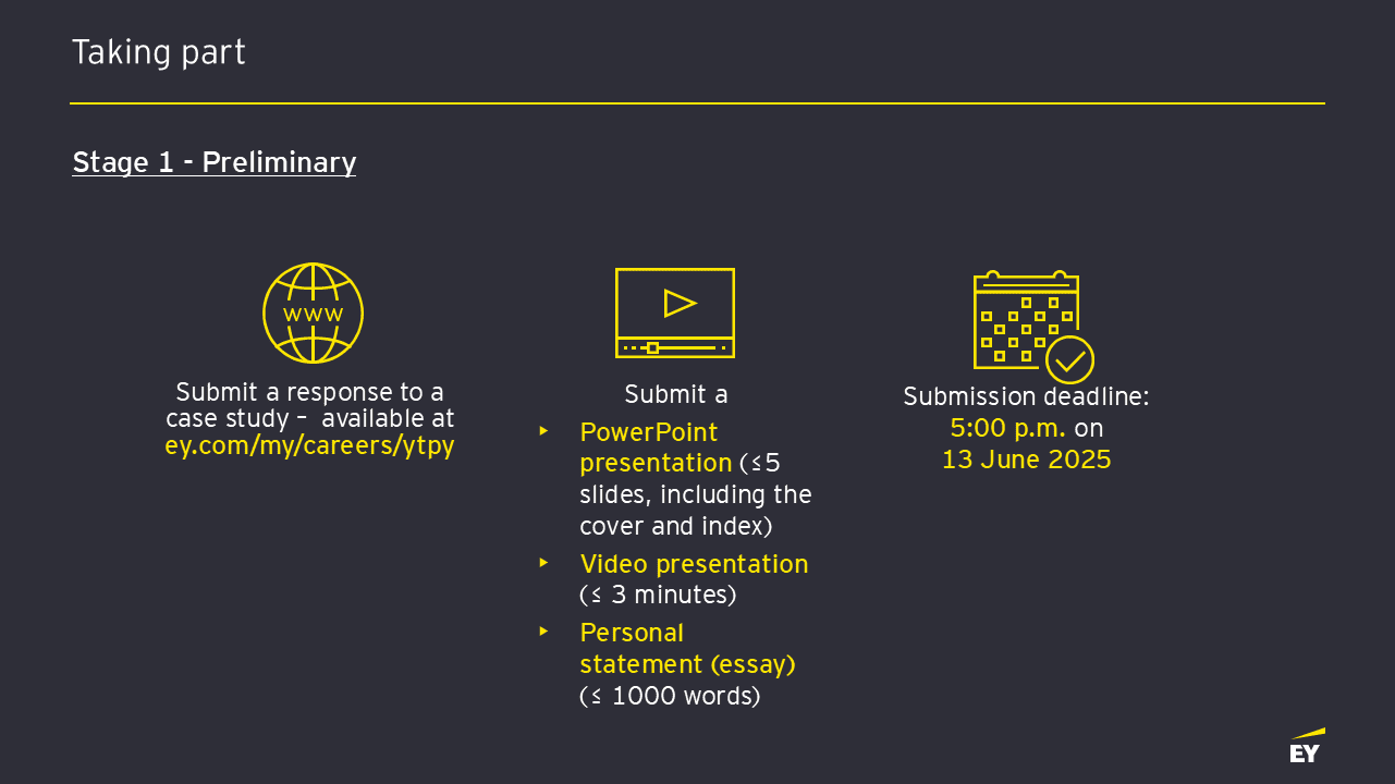 If you have any queries about this competition, please email eyytpy@my.ey.com