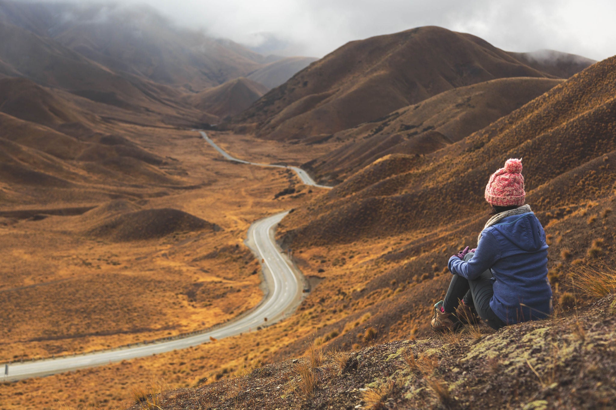 Woman sitting in mountain