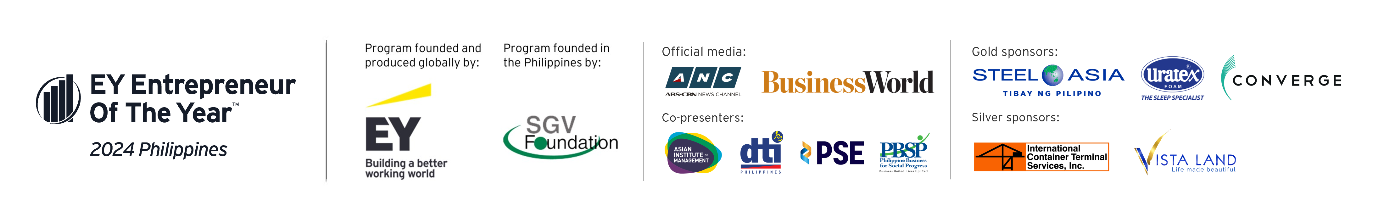 The EY Entrepreneur Of The Year™ is an annual awards program that honors Philippines’ top entrepreneurs for their contributions to the economy and society. For more than a decade, EY has been committed to supporting the entrepreneurial cause in Philippines, coinciding with the government's focus on fostering entrepreneurship and grooming local entrepreneurs to take on the world market.