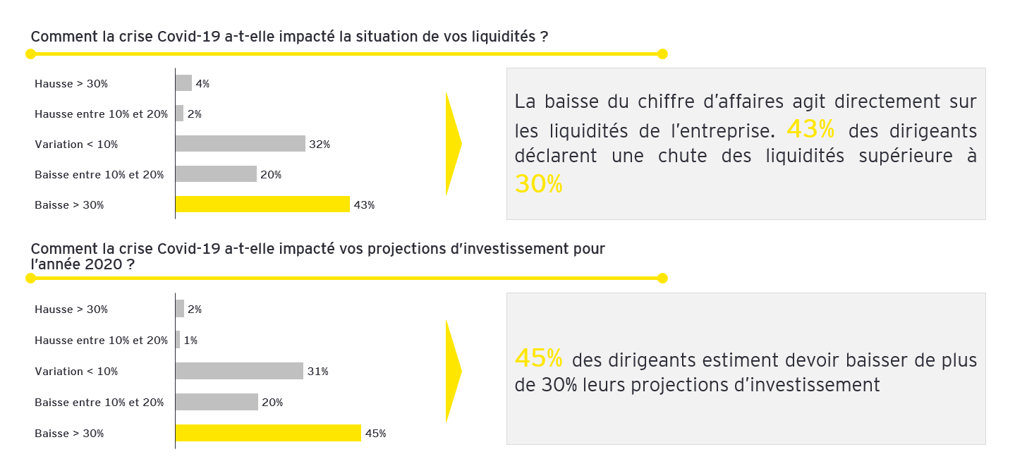 Le déclin important du chiffre d’affaires et la moindre baisse des charges de personnel résulte en une forte baisse des liquidités et la capacité d’investissement des entreprises.