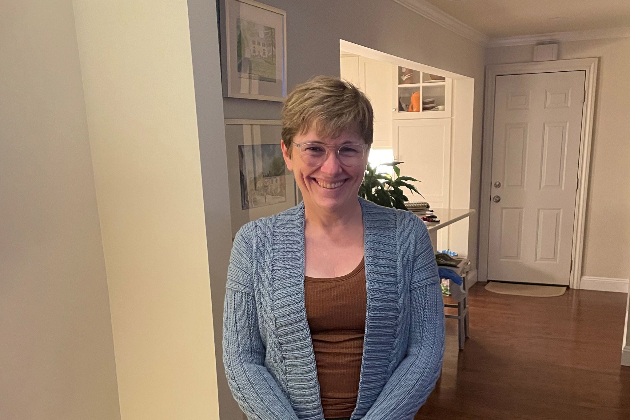 Today Caroline beams, standing in her New Jersey home, showing off the blue cardigan she’s just completed. It’s the latest in an extensive list of personal and professional accomplishments for this lifelong learner.