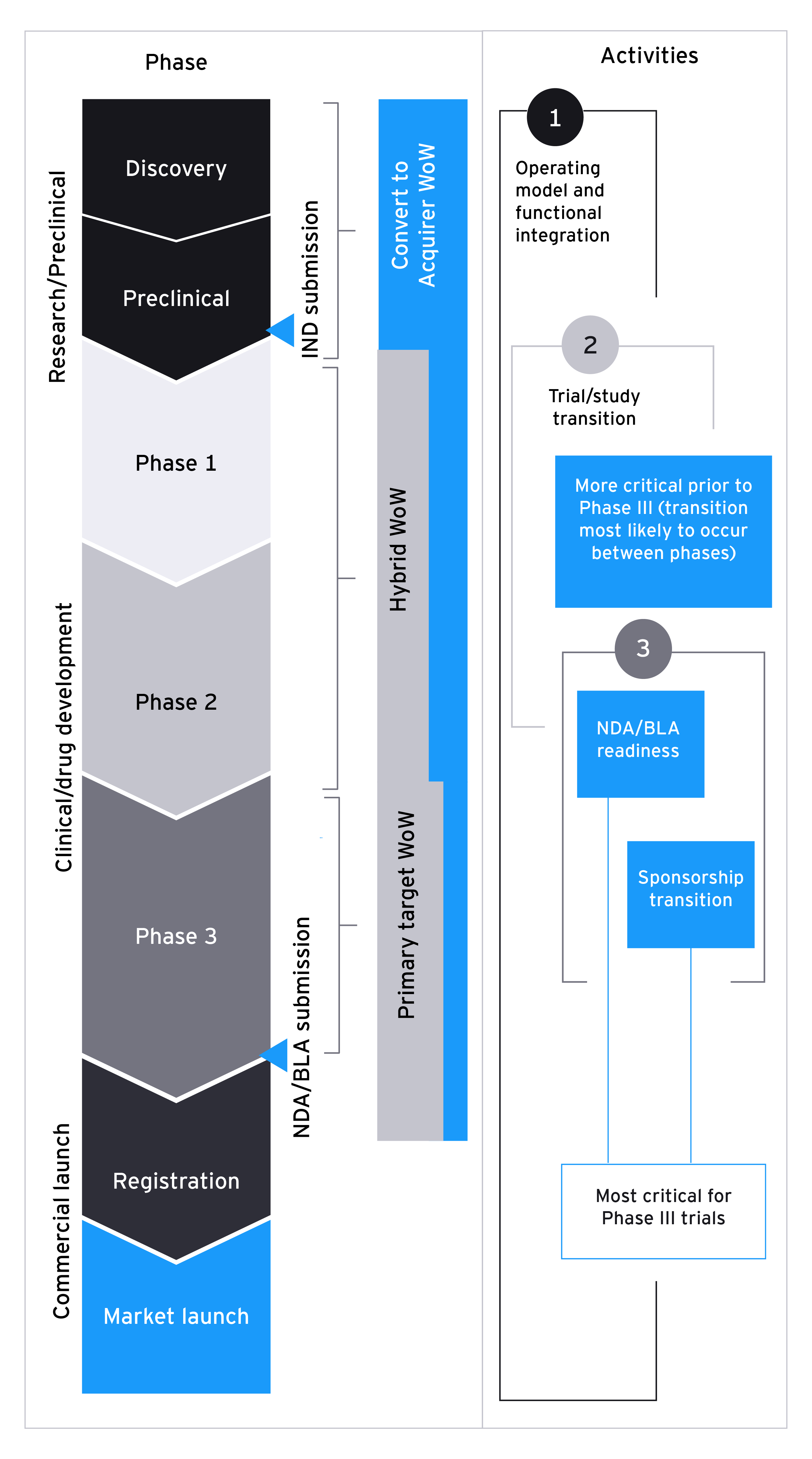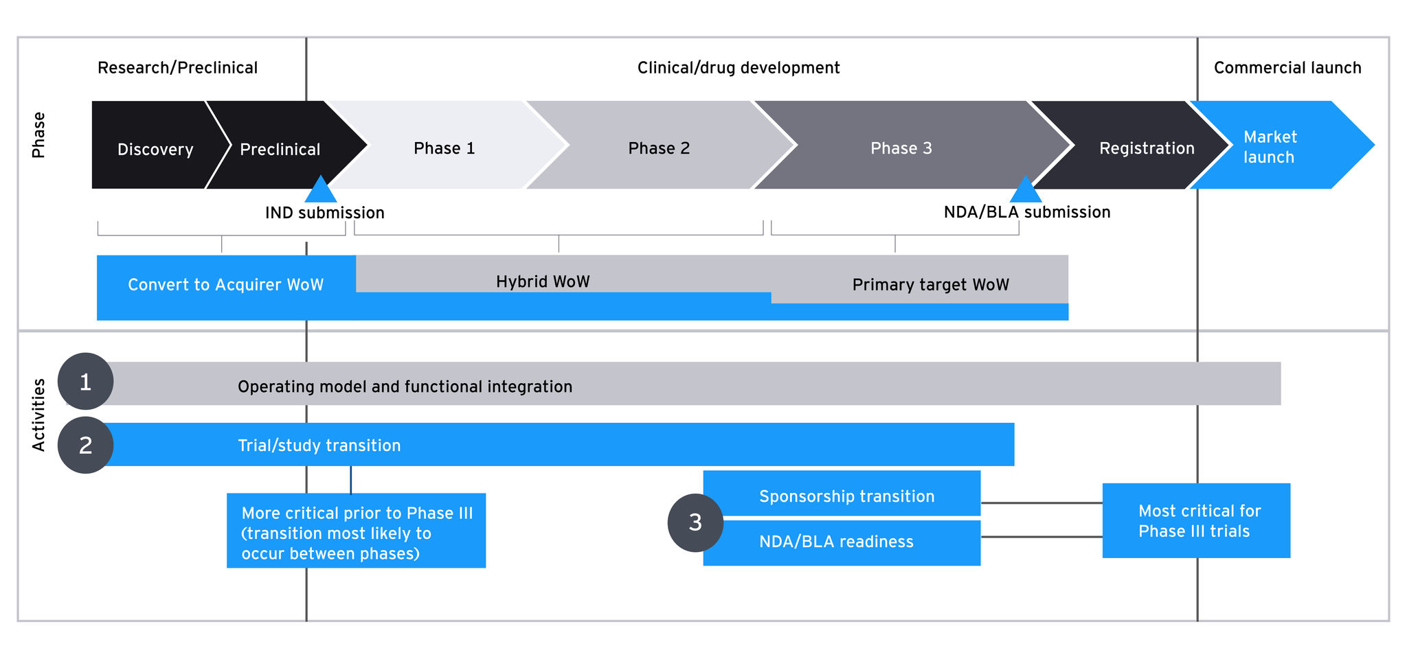 A biopharma company, focused on rare diseases, was acquiring pre-commercial assets to fill its pipeline. The acquirer, which had limited integration experience, was focused on continuity of clinical trials, regulatory compliance and trial sponsorship transition planning prior to a rapidly approaching FDA submission deadline for the Phase 3 asset. It also had organizational synergy targets to meet while still hitting the proposed market launch date.
