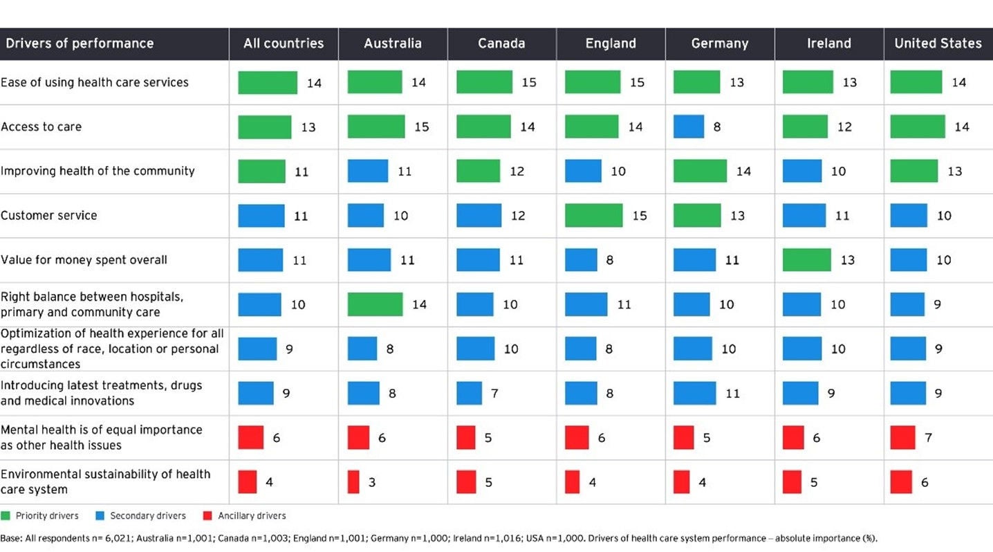 The survey findings spotlight key opportunity zones for health systems. The biggest opportunities lie in improving those aspects consumers rated as very important but where they rated their current health system as having lower performance (as shown in the matrix below).