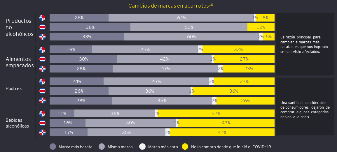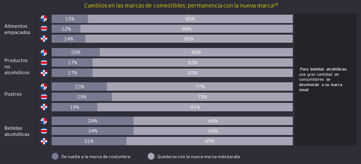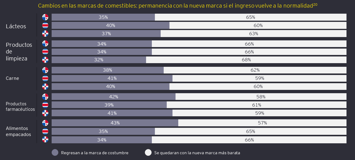 Cuanto más dure la cuarentena, más tiempo estarán satisfechos los consumidores con la calidad que obtienen de sus nuevas marcas (más baratas); incluso si los salarios de los consumidores volvieron a la normalidad, el 59% de ellos continuará comprando marcas más baratas.