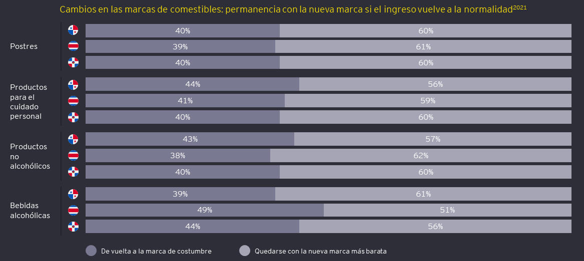 En promedio, es probable que el 59% de los consumidores se quede con la marca más barata de productos esenciales suponiendo que sus ingresos volverán a la normalidad.