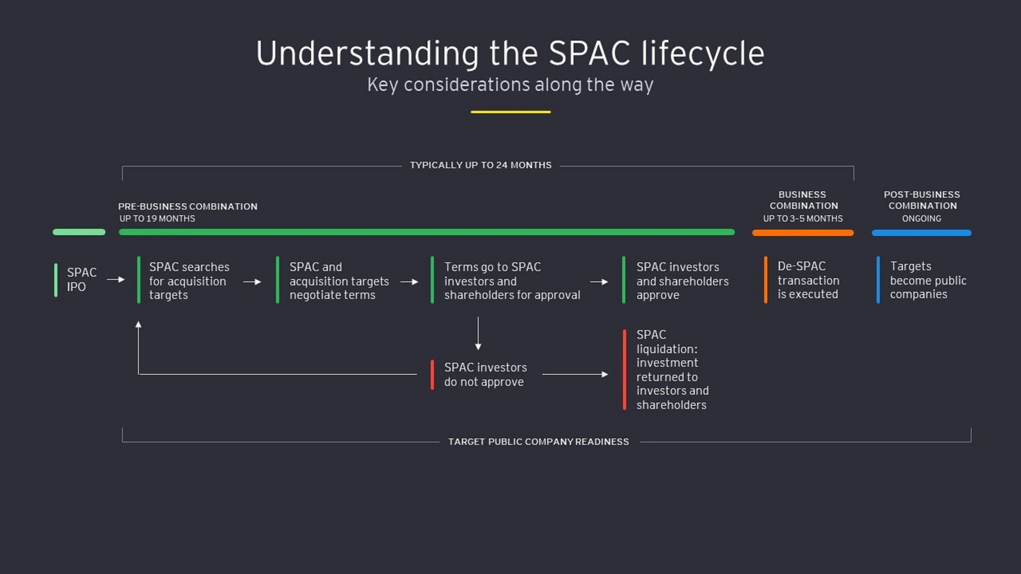 Nuestra amplia experiencia abarca transacciones que involucran sociedades paraguas (Up-Cs), carve-outs, objetivos múltiples y otras estructuras complejas. Nuestra profunda experiencia y extensa historia navegando por las oportunidades y riesgos del mercado SPAC, combinadas con nuestro liderazgo de mercado en la adopción de empresas públicas, posiciona de manera exclusiva a los profesionales de EY-Parthenon para ayudar a los patrocinadores de SPAC y a las empresas objetivo a evaluar oportunidades, hacer que las transacciones sean más eficientes y lograr sus objetivos estratégicos.