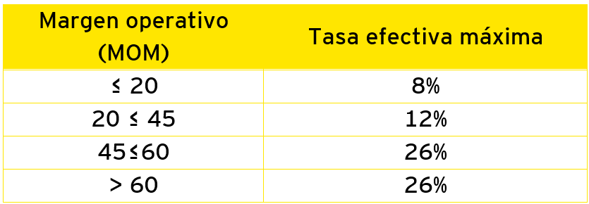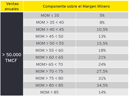 Específicamente, se establece que cuando la suma del impuesto de Primera Categoría, el royalty minero (ambos componentes) y el impuesto final que los propietarios pagarían en caso de distribuir totalmente las utilidades supere el 46,5% de la rentabilidad operacional (según se define en la sección 3 i), arriba), entonces el royalty se ajustará de manera que no supere dicho 46,5% (en el caso de los explotadores mineros con ventas inferiores al equivalente de 80 mil TMCF, el límite se reduce al 45,5%). A estos efectos, el impuesto final de los accionistas consistirá en la cifra que resulte de aplicar un 35% sobre la renta líquida imponible de la empresa, menos el impuesto a la renta corporativo pagado en el mismo ejercicio.
