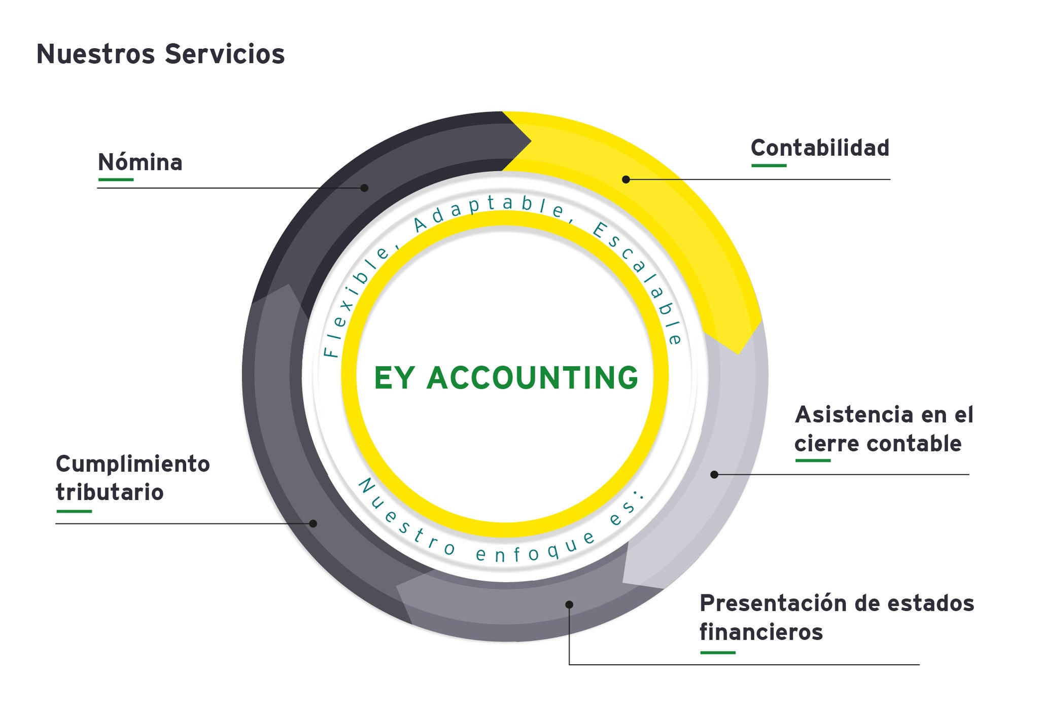 EY Accounting ofrece un enfoque adaptable, flexible y escalable, con el respaldo de una red de profesionales con amplica experiencia en asuntos contables y de impuestos.