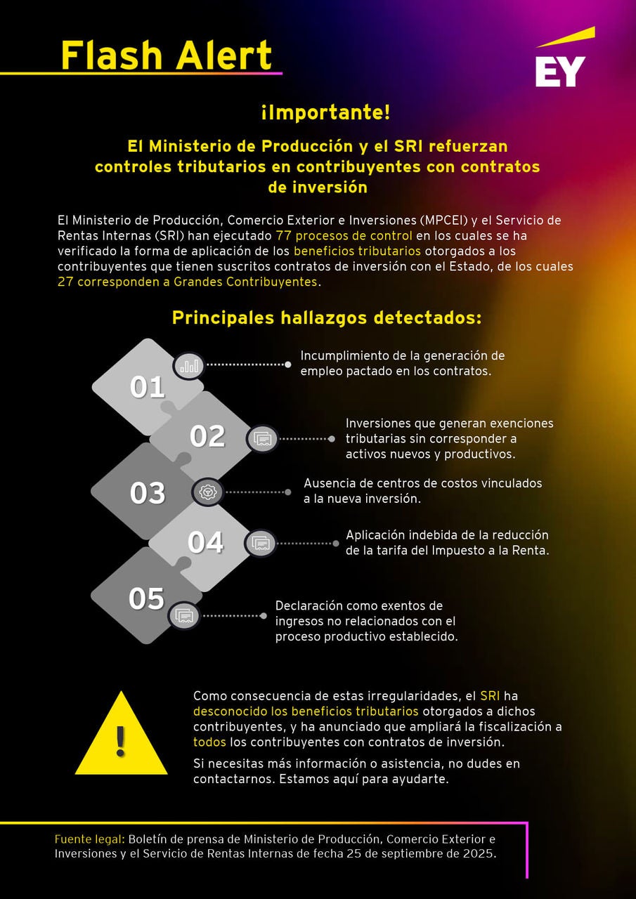 El MPCEI y el SRI refuerzan controles en contribuyentes con contratos de inversión