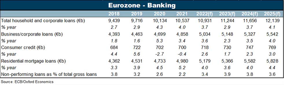 Para Nigel Moden, Director de Banca y Mercados de Capitales de EMEIA, "los préstamos bancarios cubren tradicionalmente alrededor de la mitad de las necesidades de financiación de las empresas de la zona del euro. Aunque los préstamos corporativos crecieron en la primera mitad de 2020, ya que las empresas aprovecharon los planes de préstamos respaldados por el gobierno, el crecimiento de los préstamos cayó durante gran parte de 2021. Es probable que esa tendencia continúe durante 2022, ya que la alta inflación se resiente y el sentimiento se ve afectado por la invasión en Ucrania, que ha provocado un aumento significativo de los precios de las materias primas e interrupciones en las cadenas de suministro”.