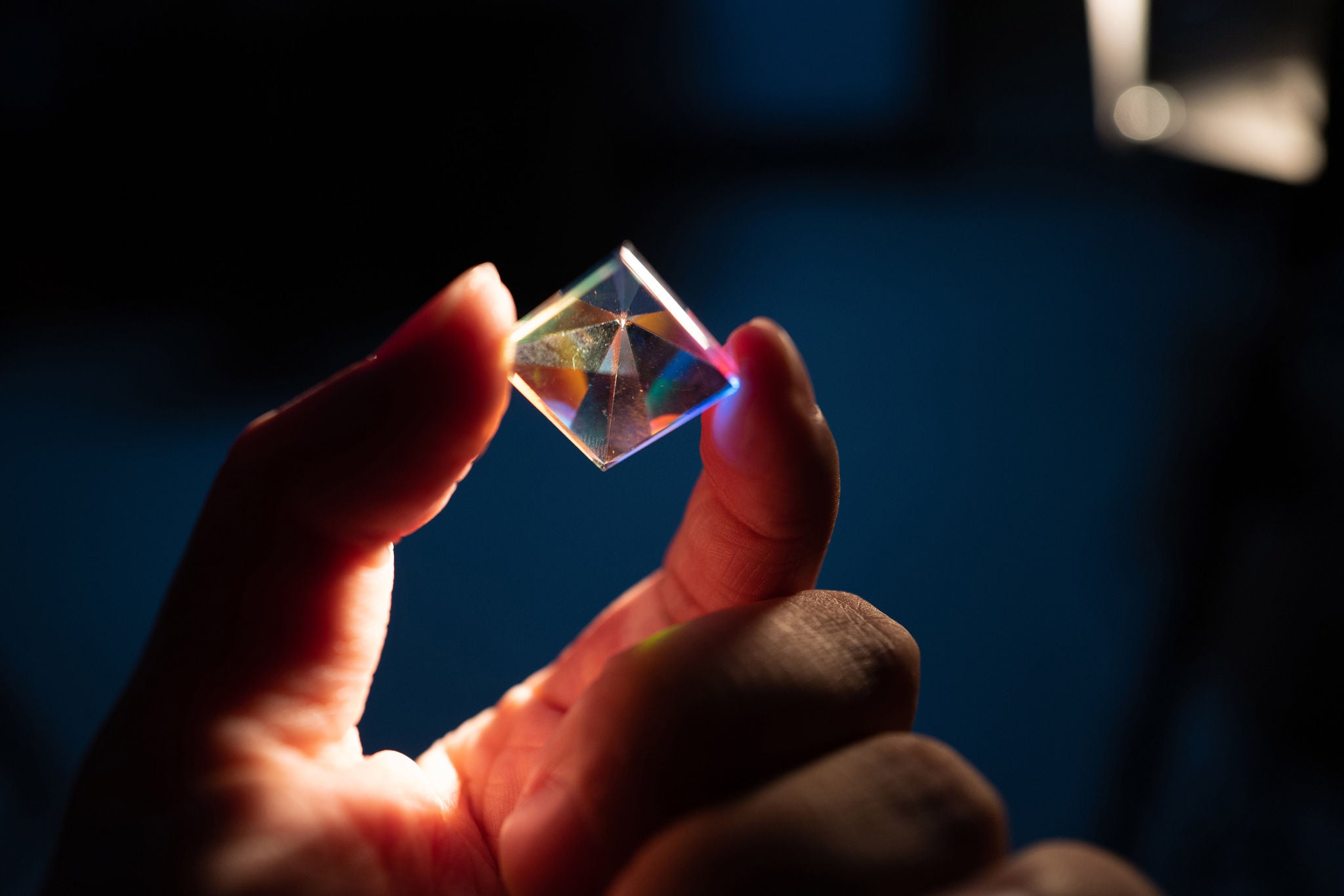 Rhombus crystal in hand closeup