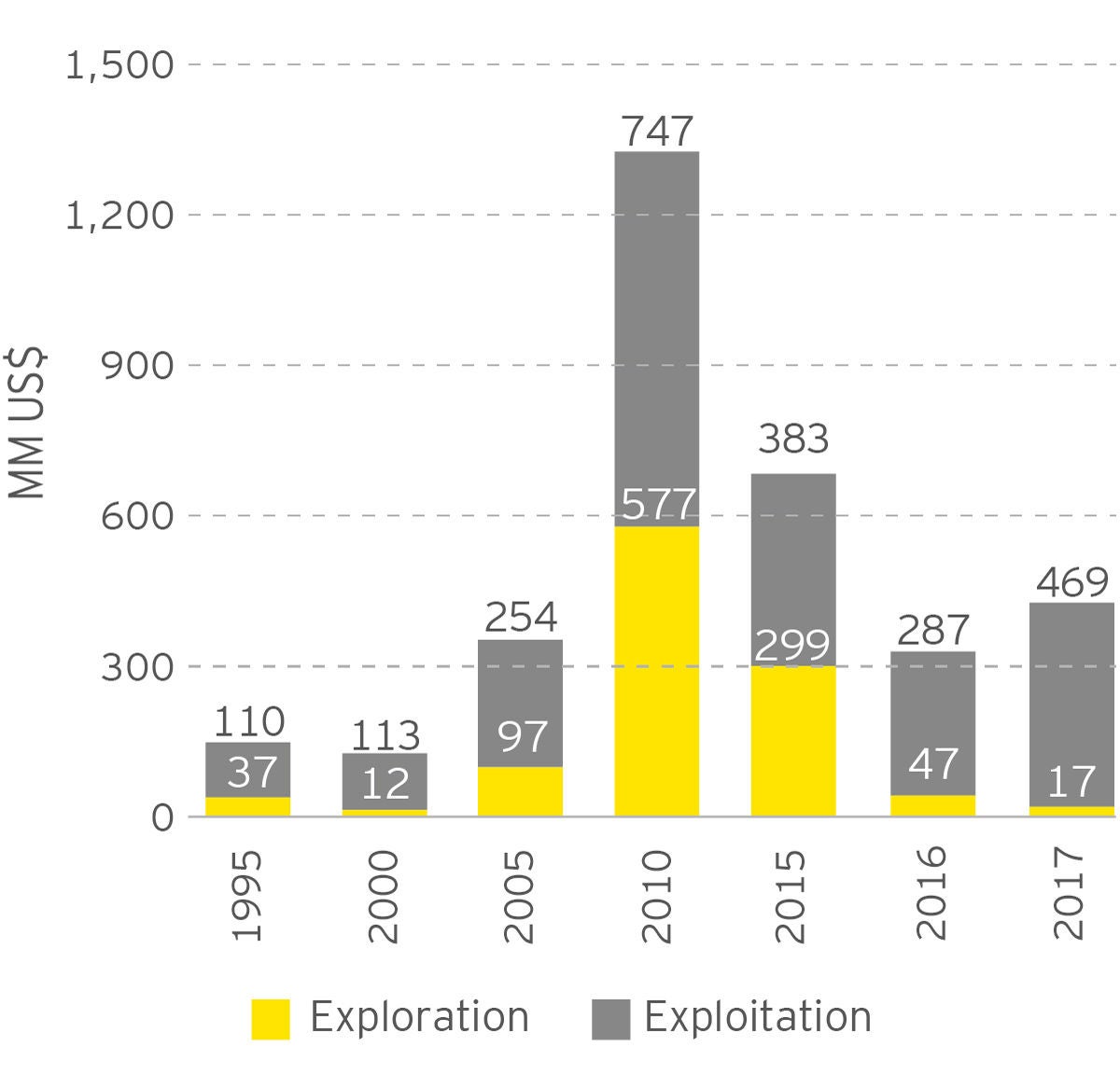 The oil & gas industry in Peru has evolved from an industry in decline to a major contributor to economic growth in Peru. From 1995 to 2014, investment in this sector increased from US$147 million to US$1.19 billion, an increase of 800%. For years 2018-2019, it is expected that US$2.0 billion will be invested in around 16 oil & gas projects, which represents 11.1% of all the investments to be made in 2018-2019.