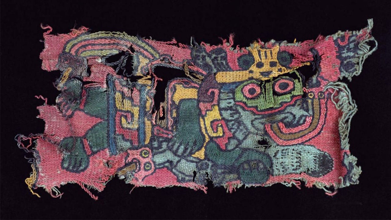 Fragmento de textil bordado Nazca. Cahuachi, fase Nazca Temprano (100-350 d. C.) Museo Antonini, Nazca.