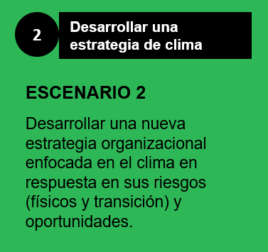 Para poder estimar estos riesgos potenciales a mediano y largo plazo, es necesario determinar la real magnitud del impacto originado por el cambio climático. Los escenarios tan cambiantes presentan un sinnúmero de desafíos para la comprensión de los efectos sobre el medio ambiente, no solo al nivel del negocio, sino también en el desarrollo estratégico y en el desempeño financiero. Cabe señalar que solo el 41% de las empresas del estudio realizado por EY, ha llevado a cabo análisis de escenarios. Si bien el análisis de escenarios es más complejo que otros elementos de divulgación, es quizás el aspecto más importante del marco TCFD, ya que convierte la teoría en estrategias tangibles y procesables. Esto alineado a la importancia para los inversionistas de conocer la estrategia de las compañías para poder hacerle frente a la vulnerabilidad del territorio donde se opera.