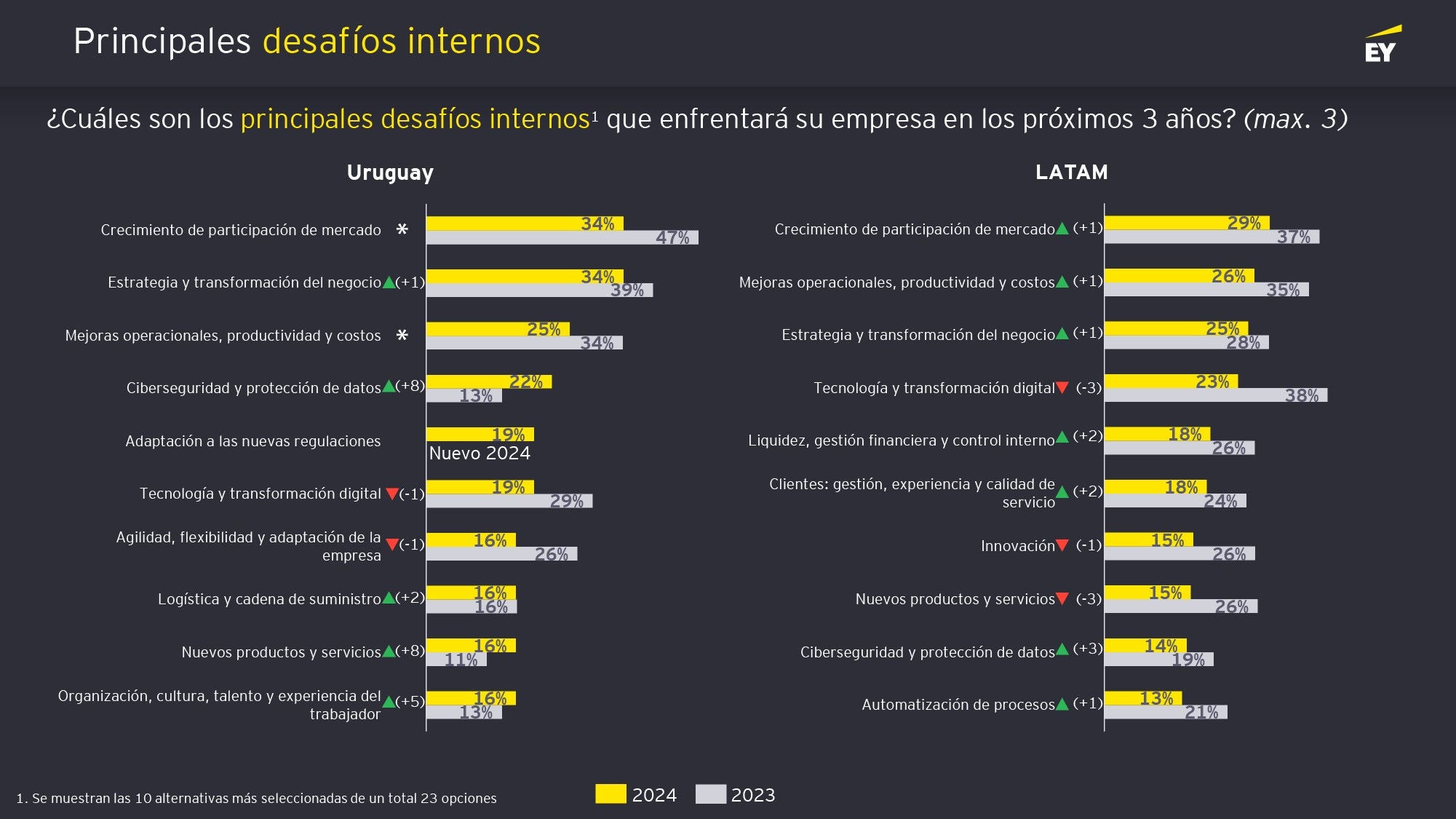 Uno de los desafíos identificados en mayor medida es la necesidad de fortalecer la organización interna. Esto abarca la estructura de la empresa, los procesos de toma de decisiones y la agilidad para adaptarse a los cambios. La cultura corporativa también es un aspecto fundamental, ya que define el ambiente de trabajo y la capacidad de la empresa para atraer y retener talento. Los líderes empresariales están conscientes de que una cultura positiva y dinámica puede impulsar la innovación y la productividad.