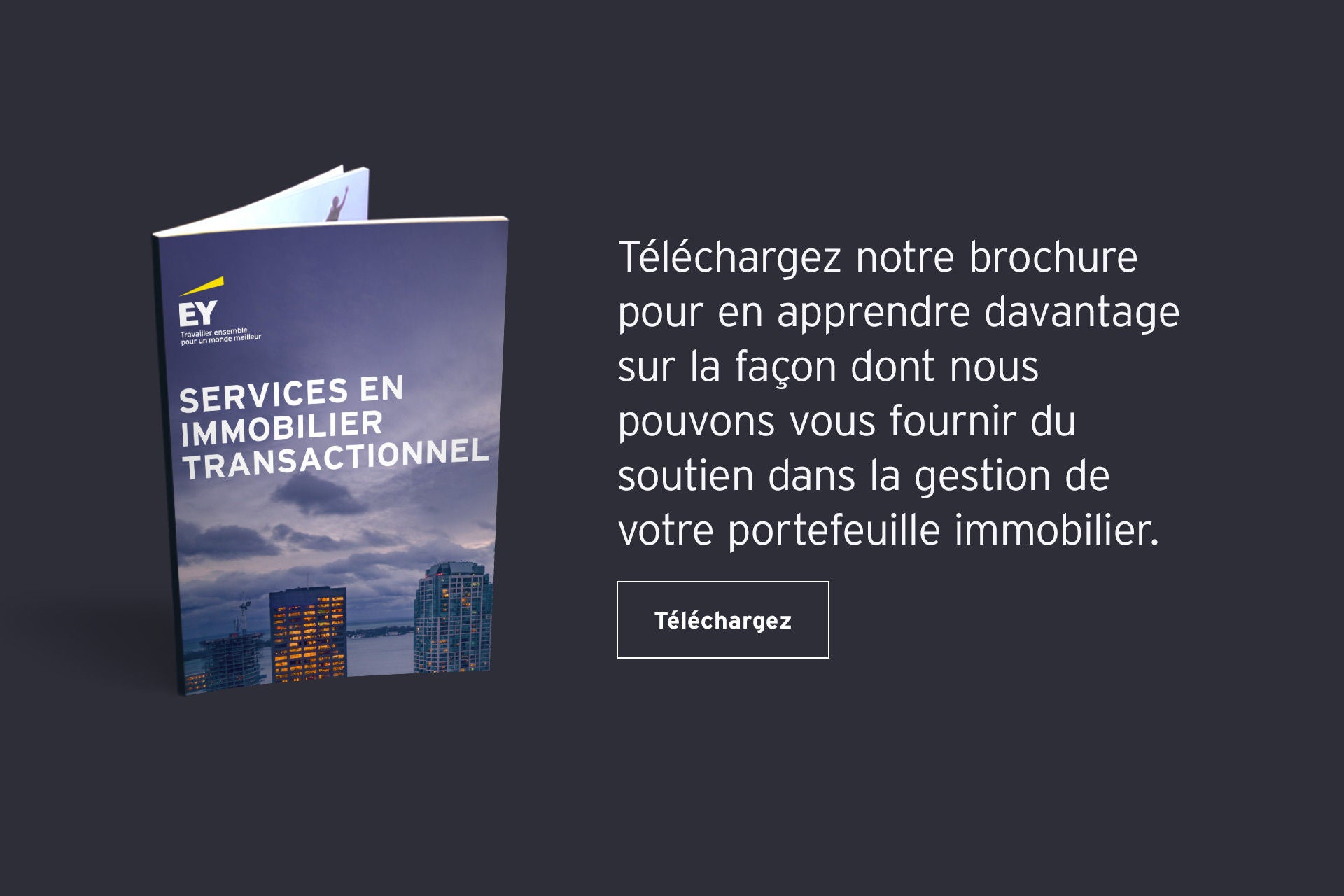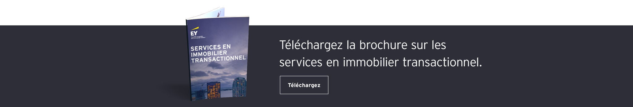 Nous sommes l’équipe de services professionnels en immobilier chef de file au Canada. Grâce à notre objectivité et à notre indépendance, nous agissons en tant que conseiller d’affaires de confiance auprès de nos clients. Par notre entremise, ils peuvent accéder à l’ensemble des services d’EY. En tant qu’équipe nationale intégrée de conseils en immobilier, nous aidons nos clients à dégager une valeur maximale de leurs activités.