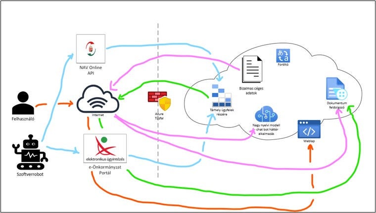 Így - a weblap elérésén kívül és a szoftverrobot forgalmán kívül- minden az adatközponton belül történik. A felhasználói weblapot pedig egyéb beállításokkal védhetjük, extra tűzfallal, vagy forgalom szabályozással – például, úgy, hogy csak a saját cégünk internet elérésén át látogathatjuk az alkalmazást.