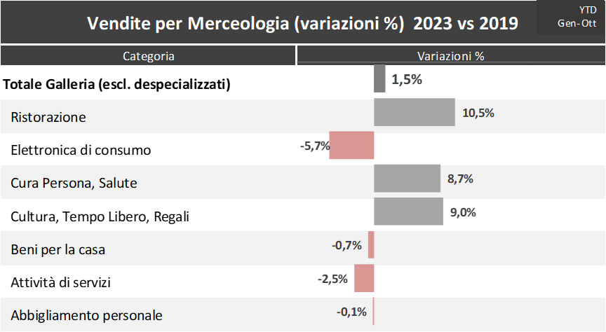 - I primi 10 mesi del 2023 risultano in crescita rispetto sia al 2022 (+3,2%) sia al 2019 (+1,5%);