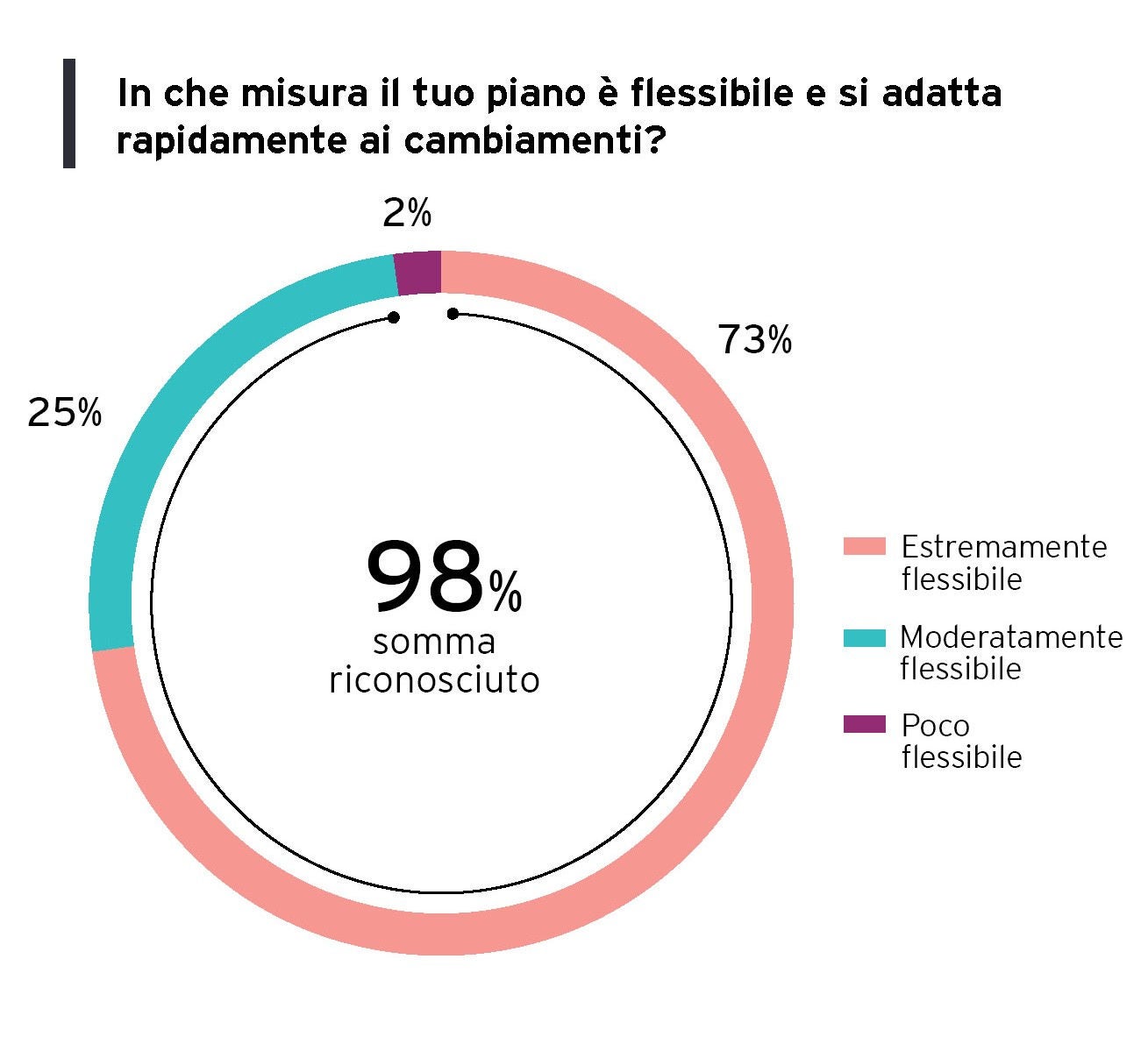 Il 90% degli intervistati afferma che il piano di comunicazione e marketing tiene conto dei cambiamenti nell'economia, nella società e nella politica in modo approfondito. Di conseguenza, il 98% degli intervistati ha adottato un piano flessibile che viene rivisto ogni mese (23%) o ogni tre mesi (27%). Questa capacità di adattamento è stata cruciale negli ultimi due anni, durante i quali ben il 54% delle aziende ha anche realizzato o pianificato un brand refresh, concentrandosi su elementi come la revisione grafica (53,8%), l'aggiornamento dei valori (38,5%) e l'espansione su nuovi prodotti e servizi (38,5%).